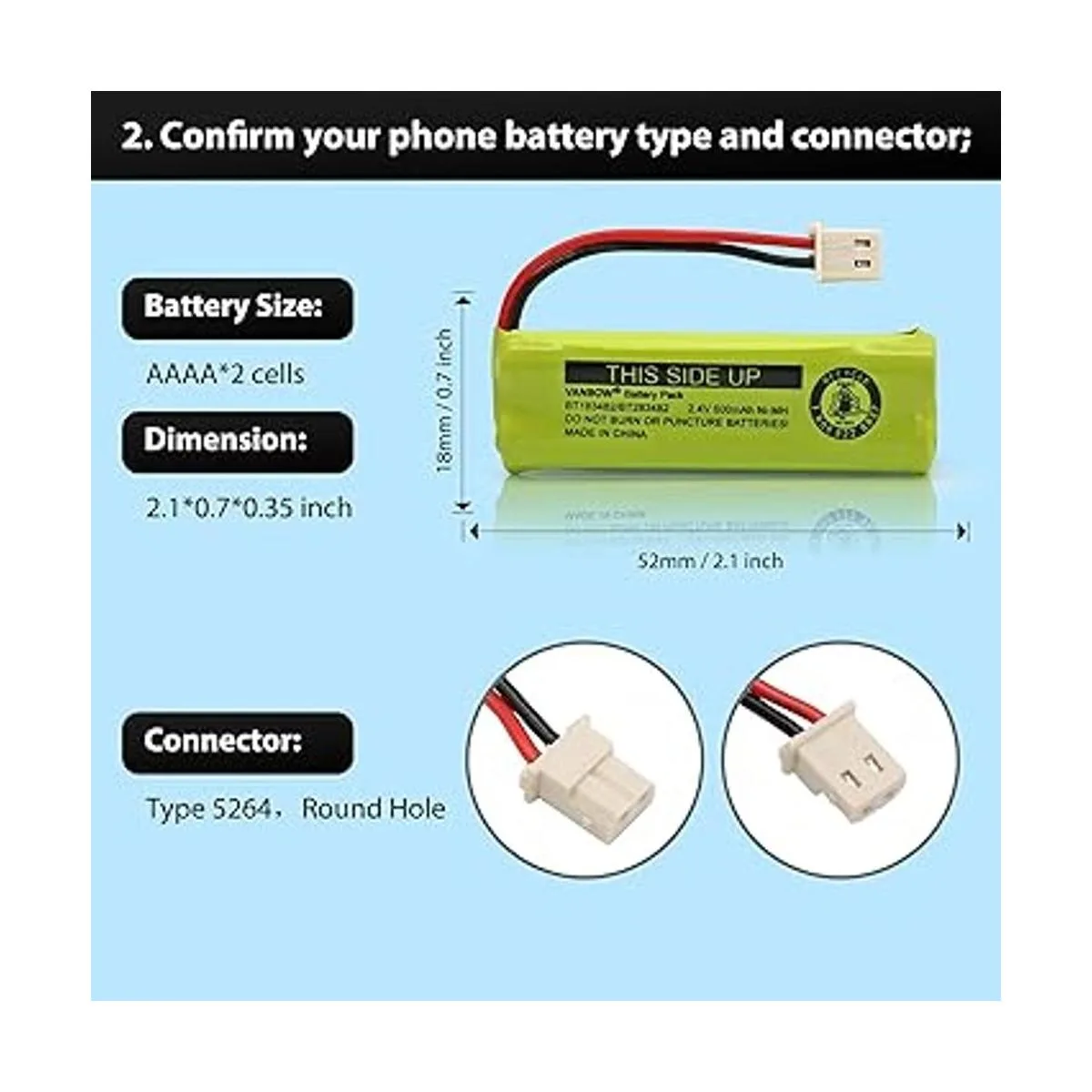 VANBOW BT183482/BT283482 2.4 V 600 mAh NiMH batería recargable para teléfono inalámbrico tipo: AAAA2 pilas de batería, más larga que el tamaño AAA