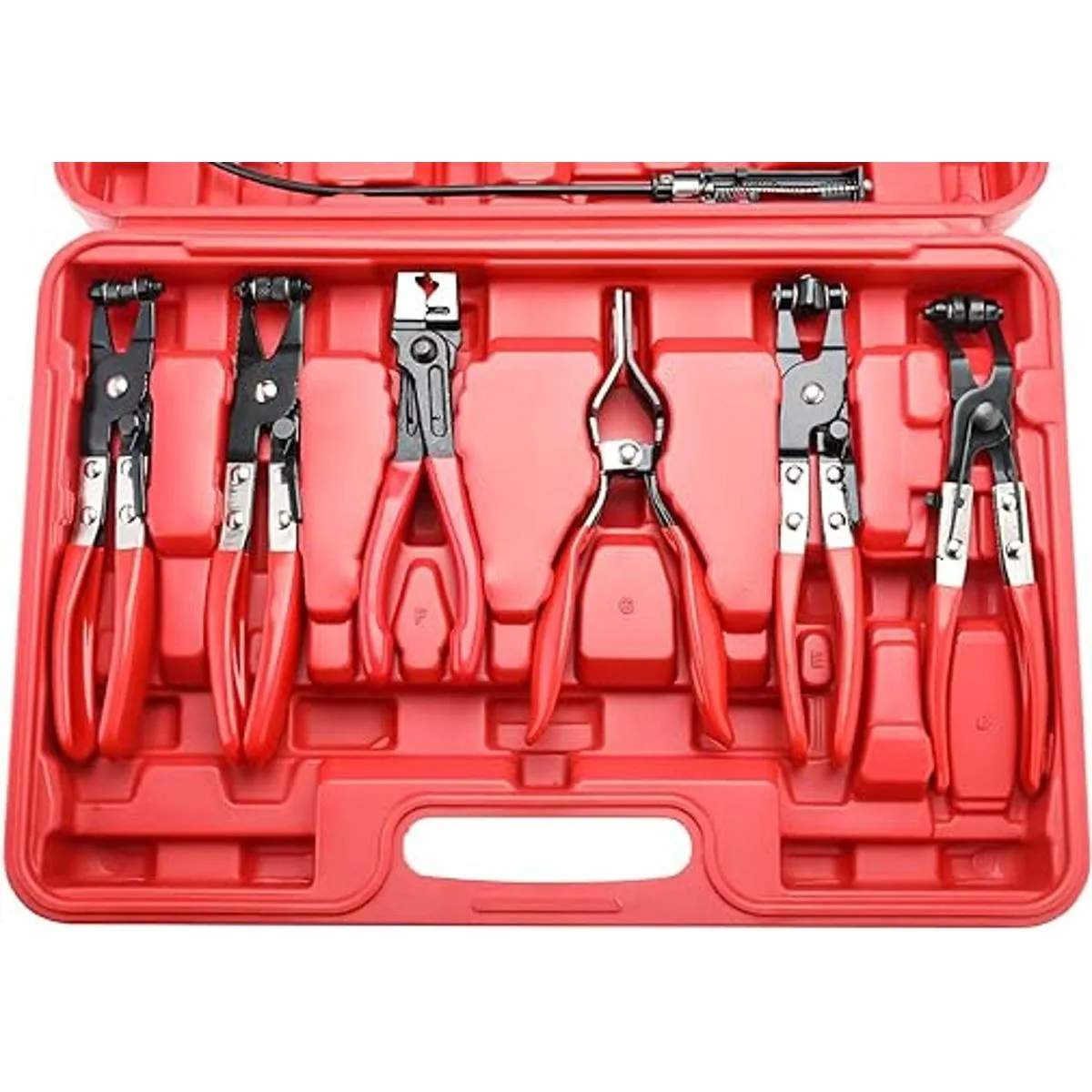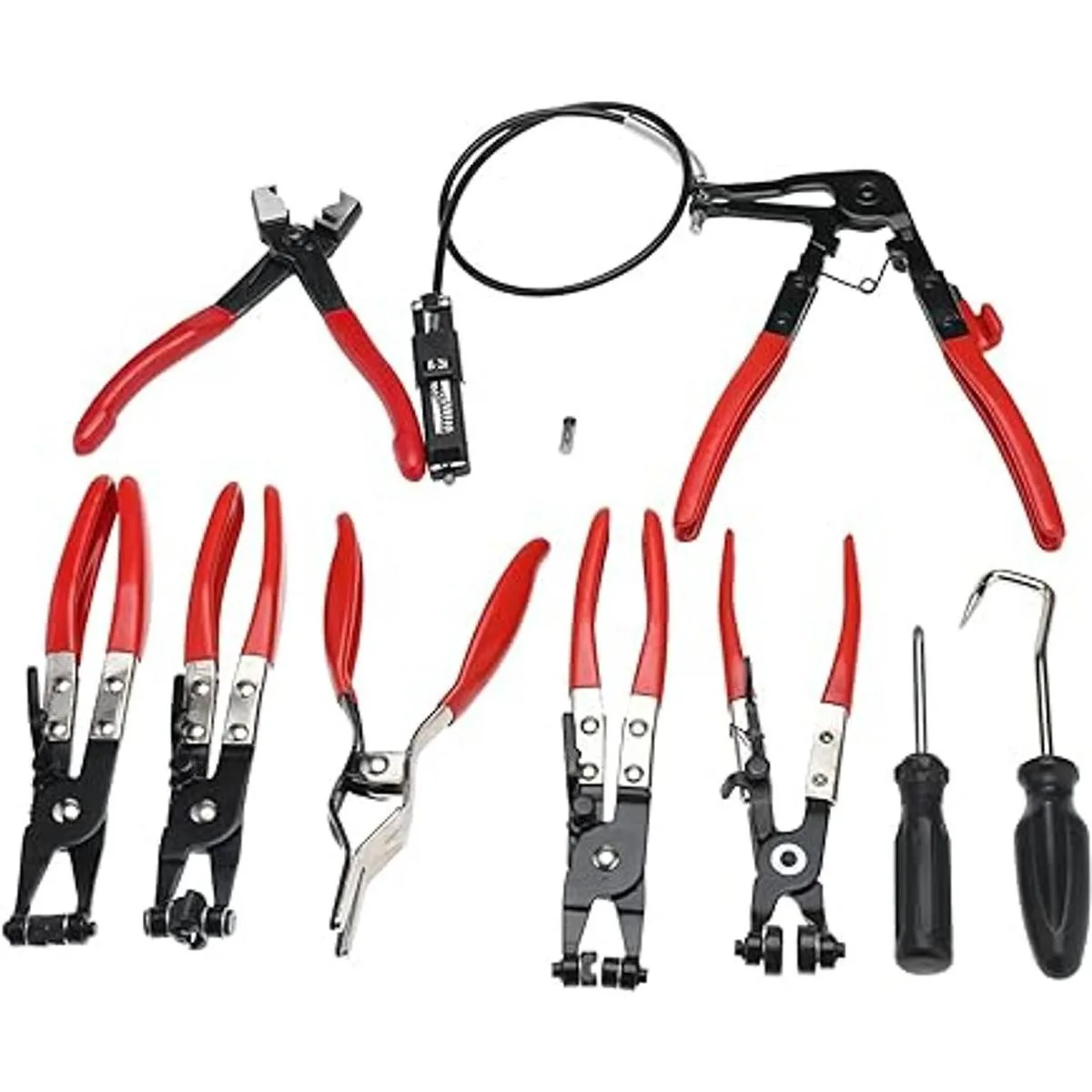 BTSHUB Juego de 9 alicates de abrazadera de manguera, manguera de combustible de largo alcance, manguera de aceite, alicates de extracción de manguera de agua para calentador de radiador de refrigerante automotriz
