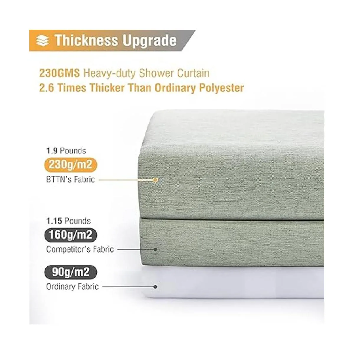Calidad prémium: utilizando un avanzado tejido paralelo de hilo de dos colores, 2.6 veces más denso que el tejido tradicional. El tejido de alta densidad y el tejido de poliéster resistente proporcionan la máxima protección para tu privacidad. El estilo simple y generoso de color sólido mejora al instante el sabor de tu baño y te permite disfrutar de un lujoso baño de hotel en casa