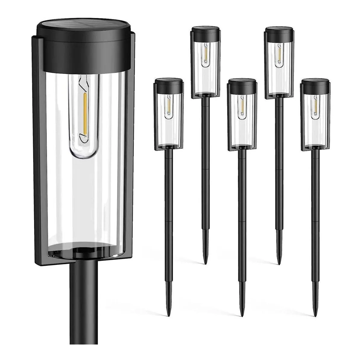 BUCASA Luces solares para caminos al aire libre, paquete de 6 unidades, superbrillantes hasta 12 horas, luces solares de larga duración, luces solares para exteriores, IP65, impermeables, para caminos de paisaje, para pasarela, entrada, patio, patio