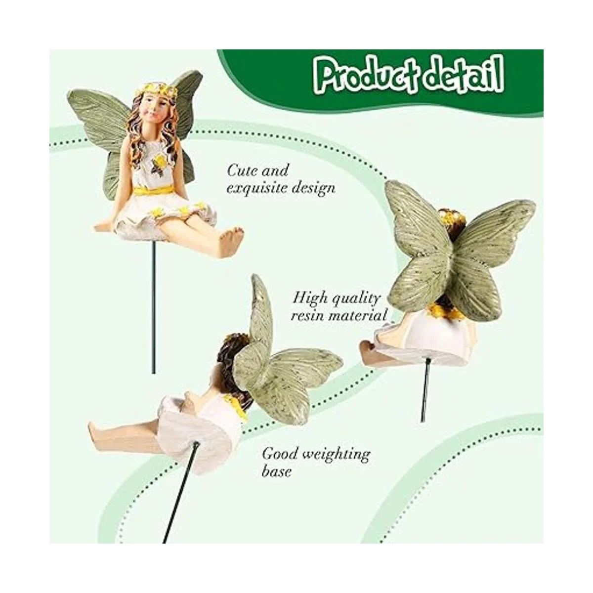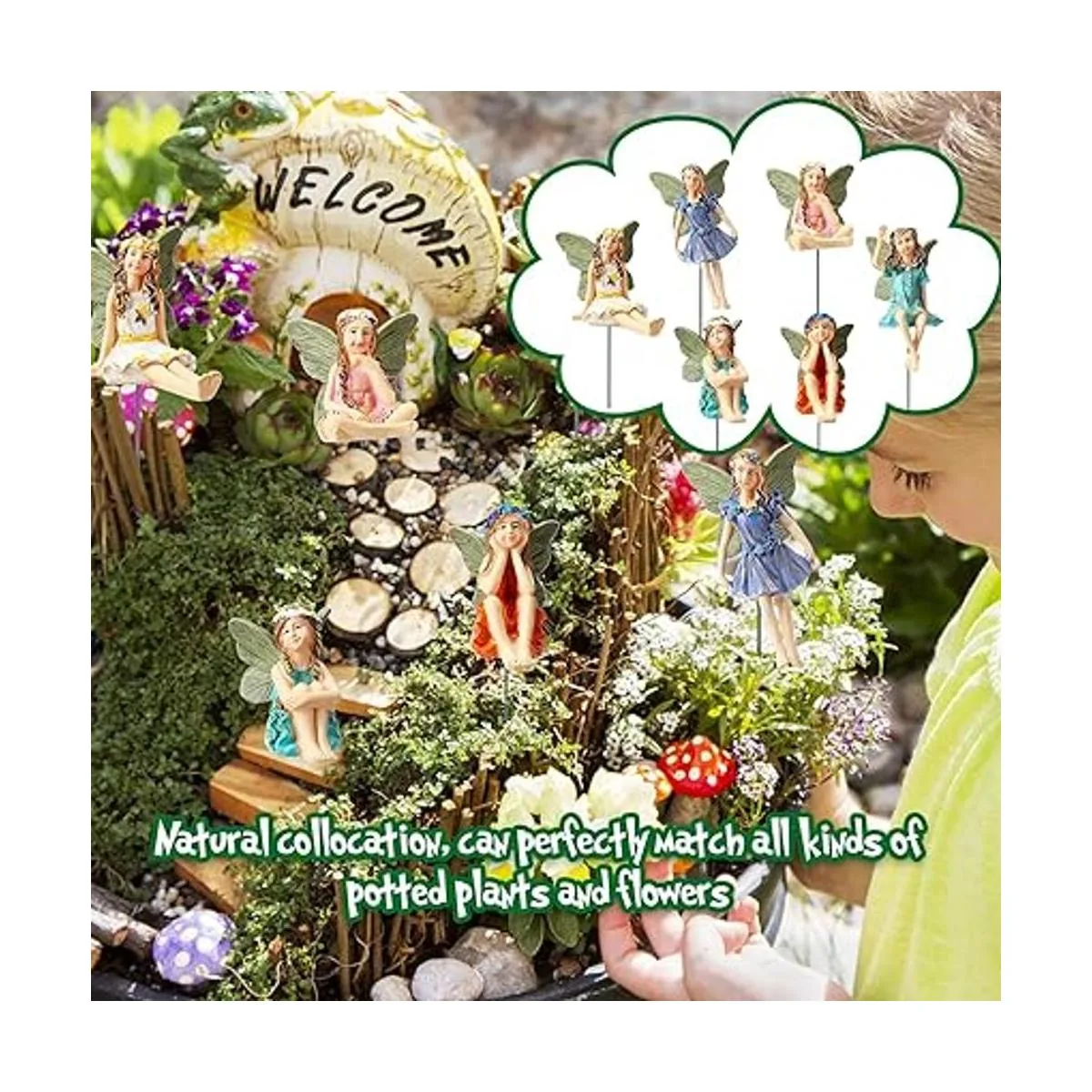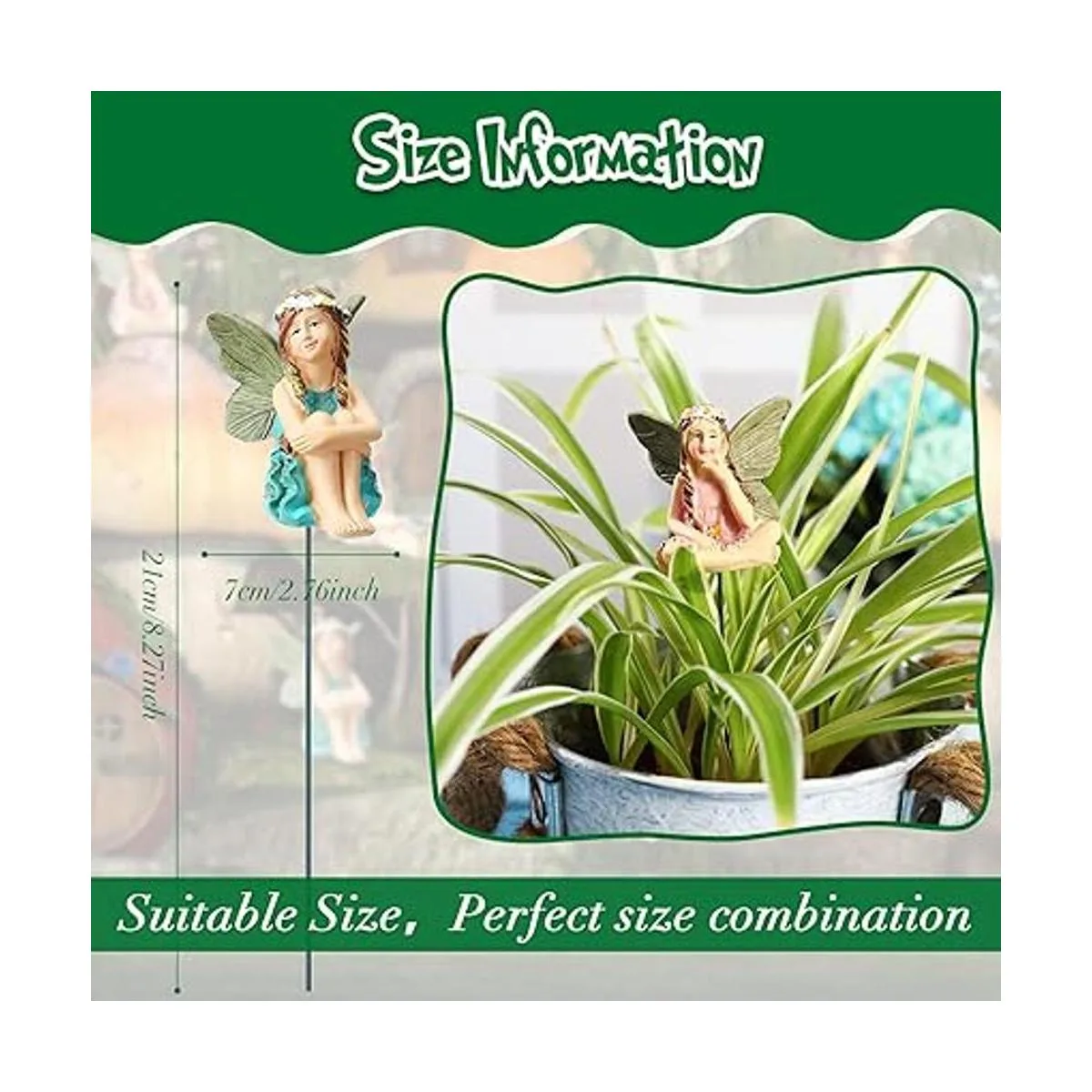 Información sobre el tamaño: el tamaño de la mini figura de hadas en sí es de aproximadamente 2.0 x 2.8 in, el enchufe del suelo es de aproximadamente 5.9 in; la longitud total del producto es de aproximadamente 8.3 in, dependiendo del estilo, habrá ligeras diferencias, el producto es simple y fácil de usar