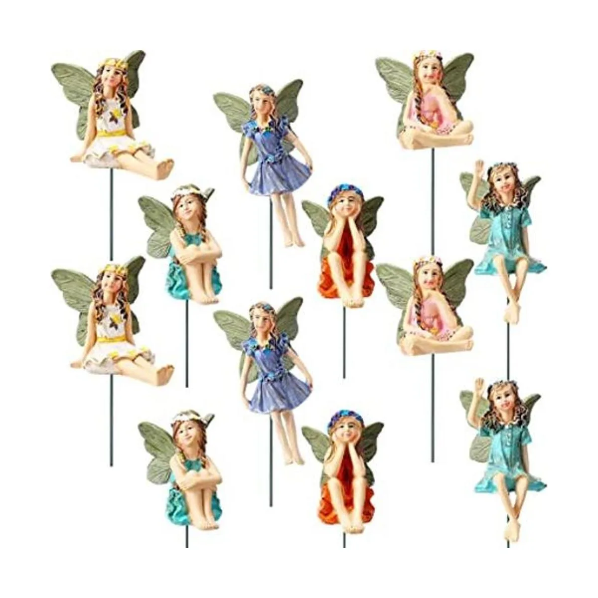 Bucherry 12 piezas de mini figuras de hadas de jardín de hadas en miniatura, decoración de escultura de hadas, accesorios de jardín para el hogar, jardín al aire libre, patio, césped, decoración de maceta