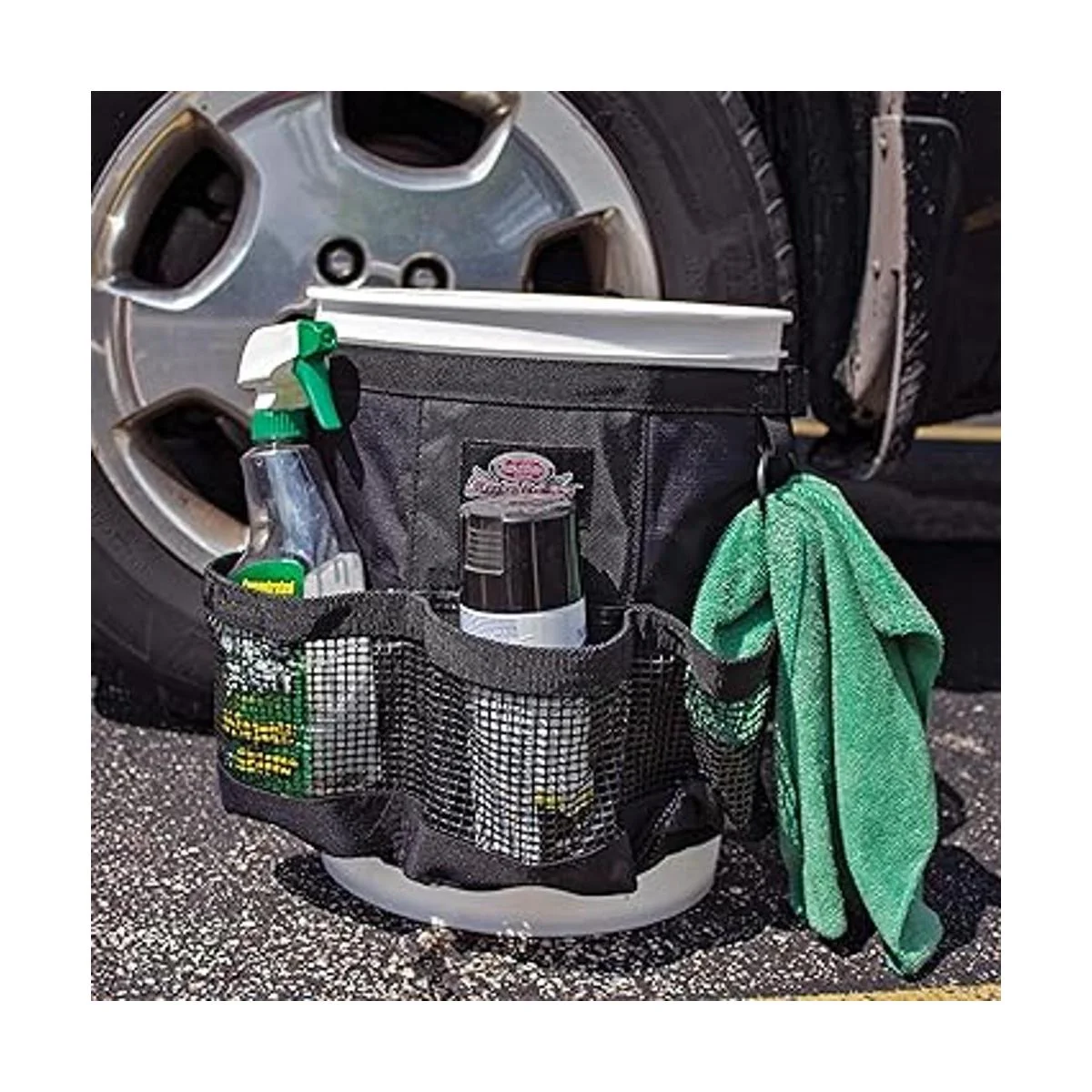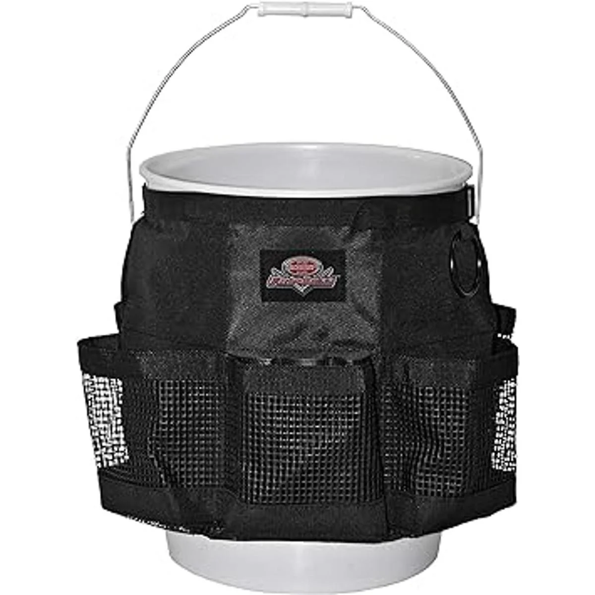 Bucket Boss Organizador para un cubo de 5 galones, con tela de secado rápido, bolsillos de malla exteriores para suministros de lavado de coche, lo que permite poner jabón y agua en el cubo, negro, AB30060