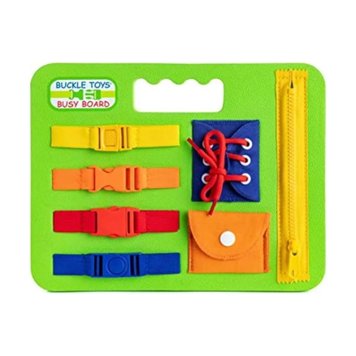 Buckle Toys Juguete de bebé Busy Board aprende a ajustar