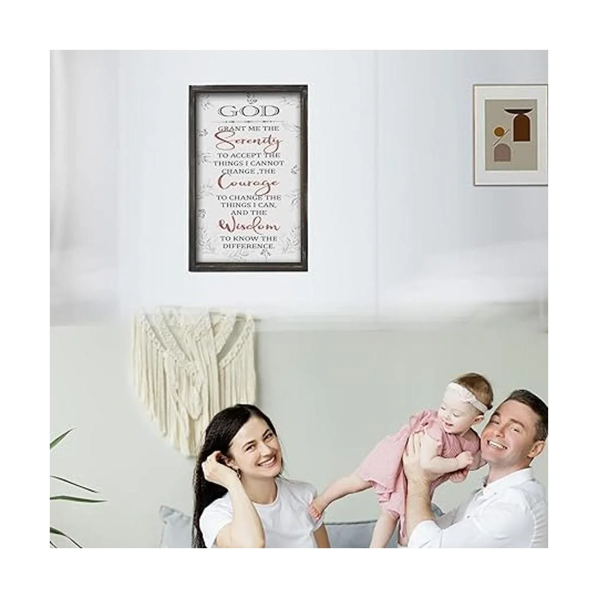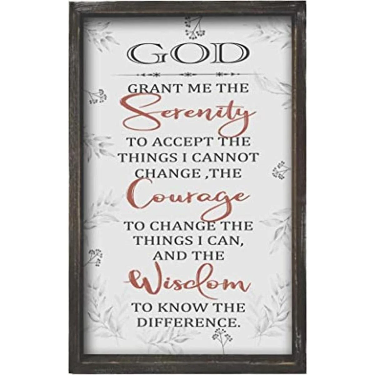 Buecasa Farmhouse God Serenity Letrero de decoración de pared con versículo religioso de la Biblia con marco rústico de madera maciza, 16 x 9.5 pulgadas vertical