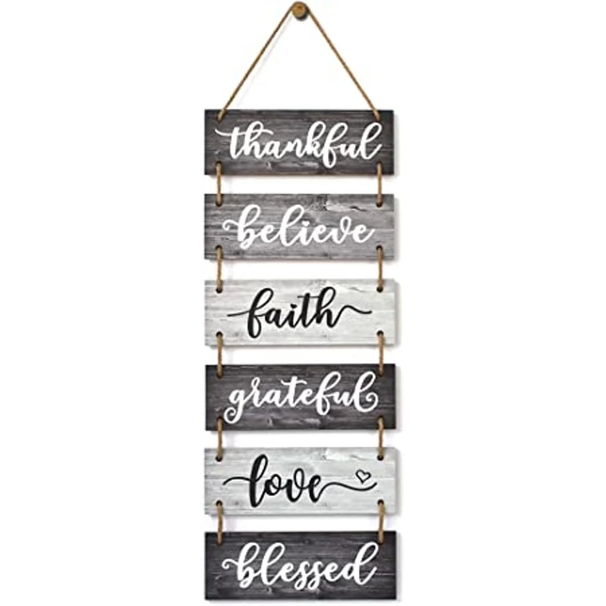 Decoración del hogar de granja: madera de grano envejecida y envejecida, aspecto rústico de granja para tu sala de estar, dormitorio. Impreso con palabras positivas y encantadoras. Son realmente agradables y ligeros, lo que te permite colgarlos en casi cualquier lugar.