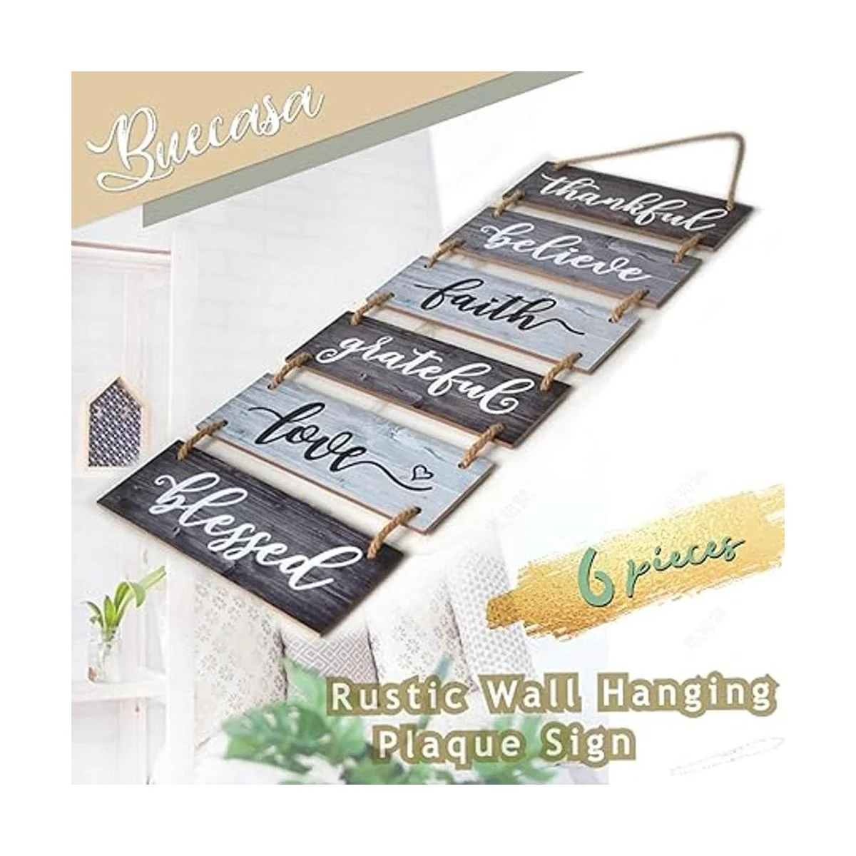 Buecasa Letrero de decoración familiar de pared, decoración rústica del hogar para sala de estar y dormitorio, placa inspiradora para colgar en la pared, 6 unidades, 38 x 12 pulgadas