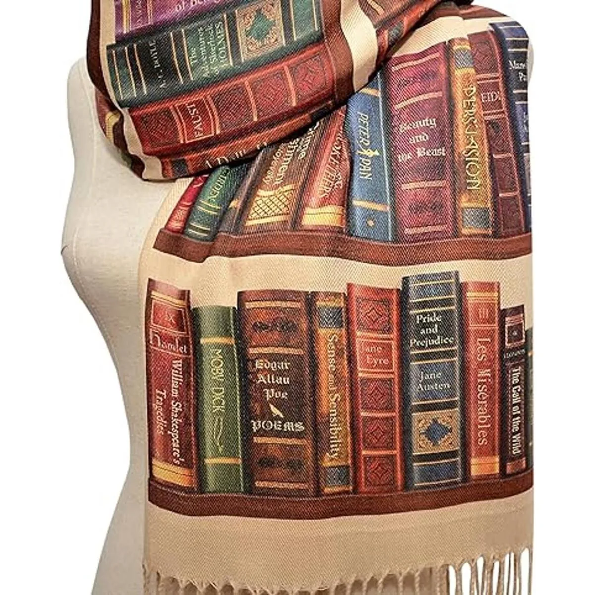 Bufanda para estantería. Chal literario con los famosos títulos de los libros