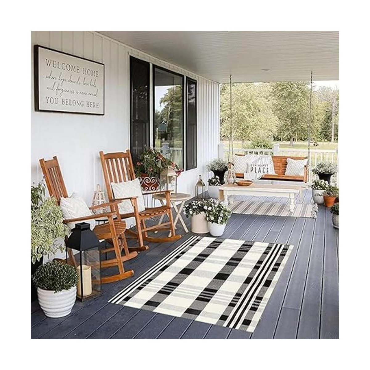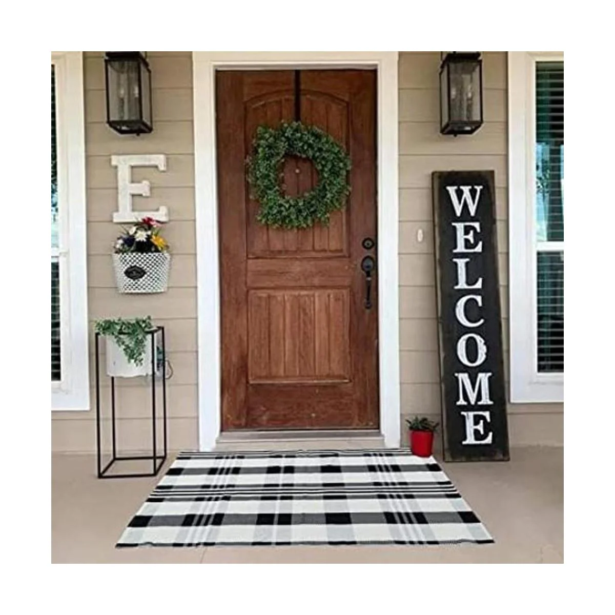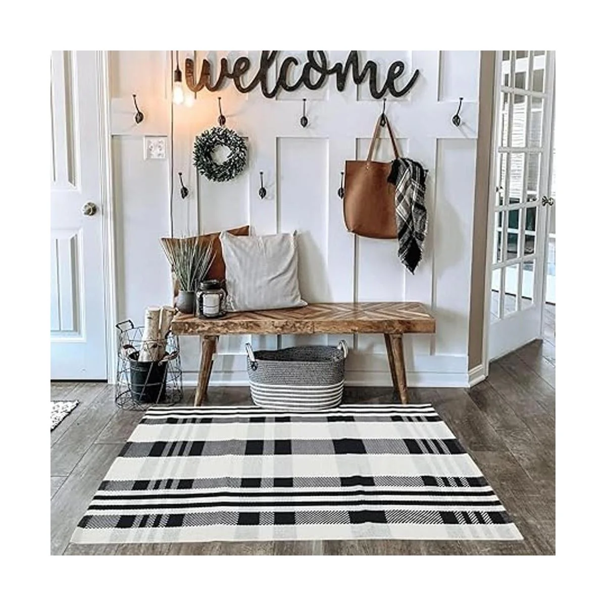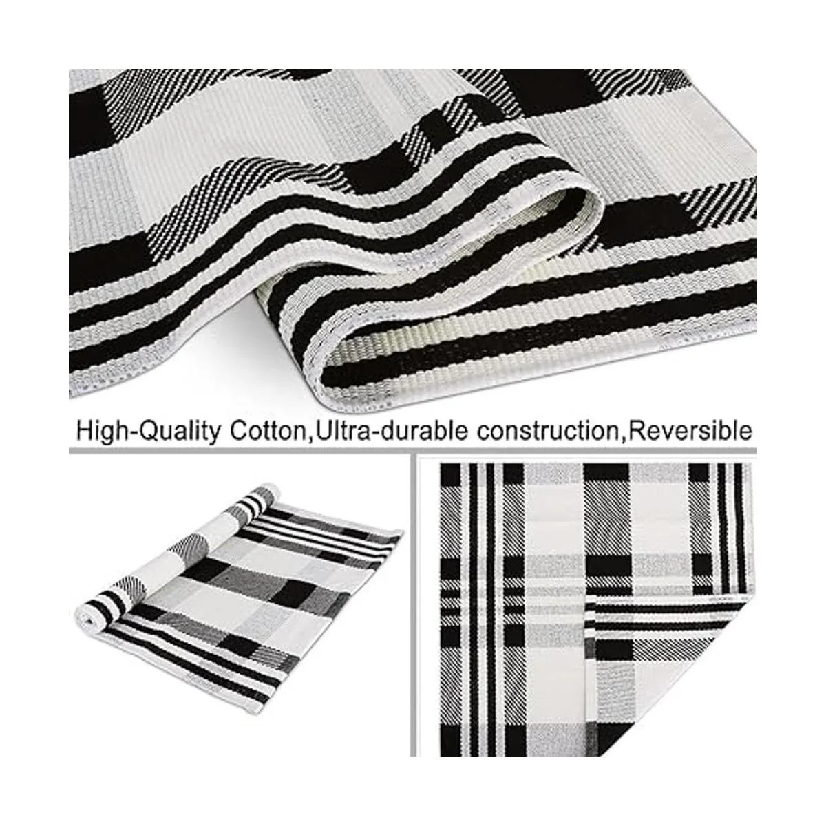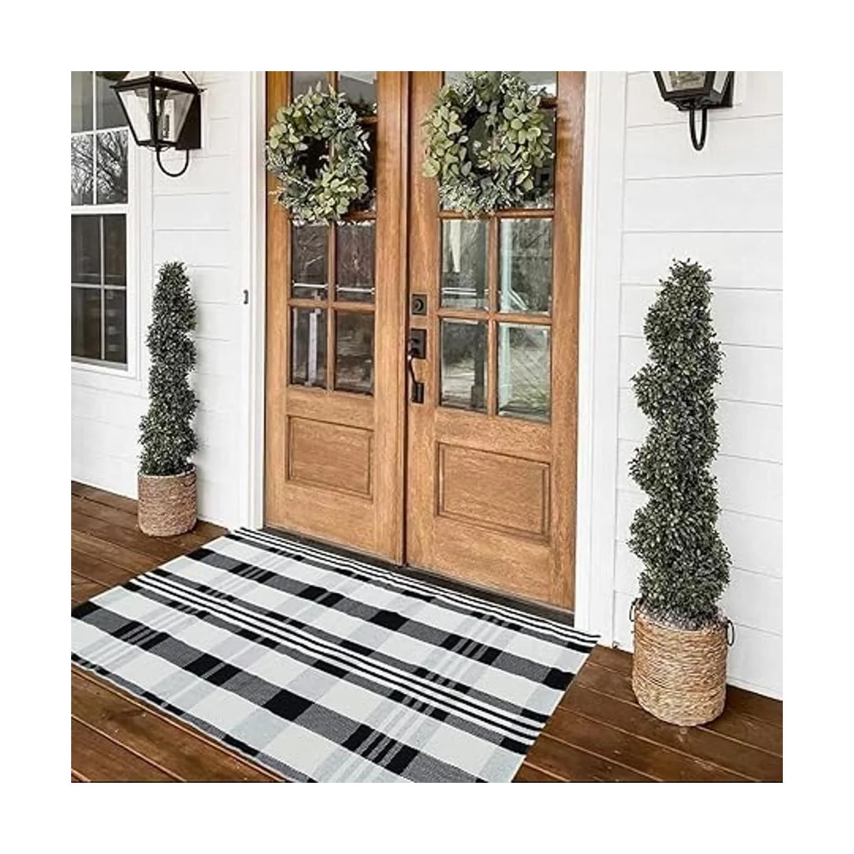 Buffalo Alfombra a cuadros para exteriores, color blanco y negro, 27.5 x 43 pulgadas, de algodón, tejida a mano, a cuadros, para puerta de bienvenida, para interiores y exteriores, para porche delantero, cocina, entrada, sala de estar