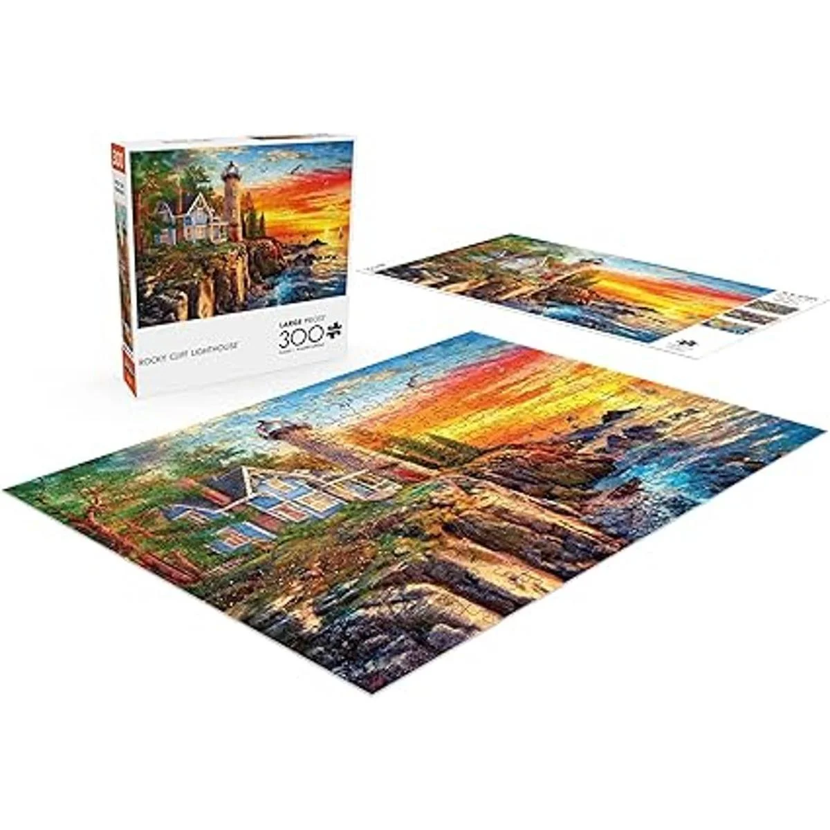 Buffalo Games Rocky Cliff Fighthouse Rompecabezas de 300 piezas grandes