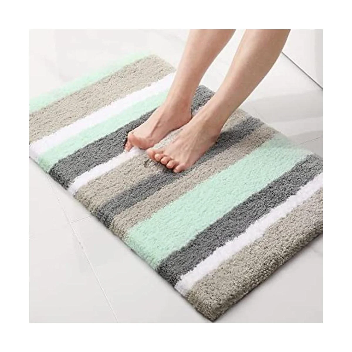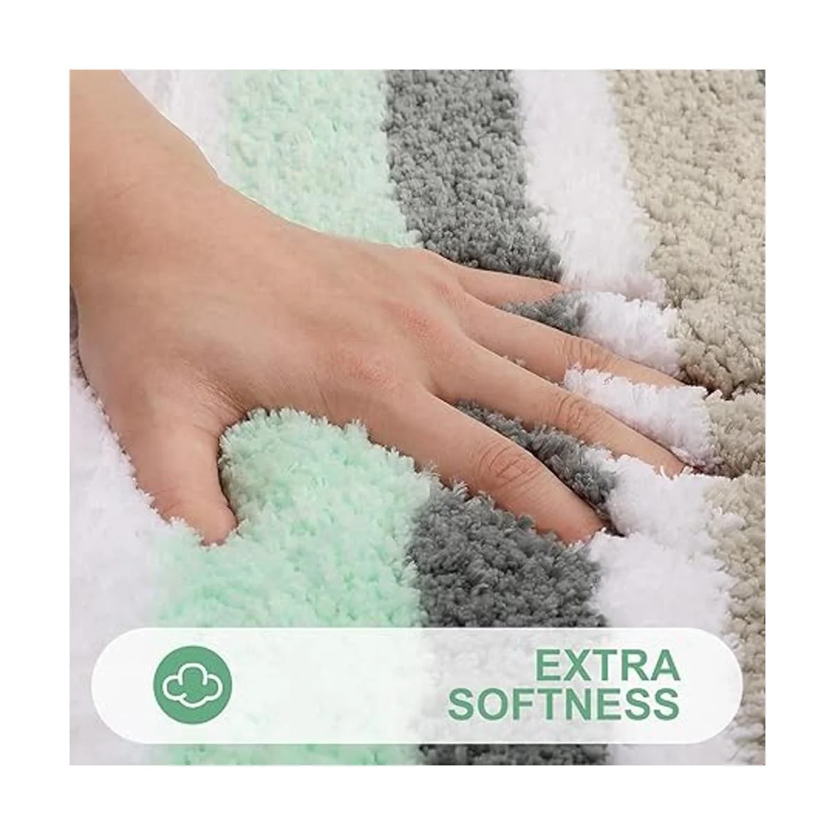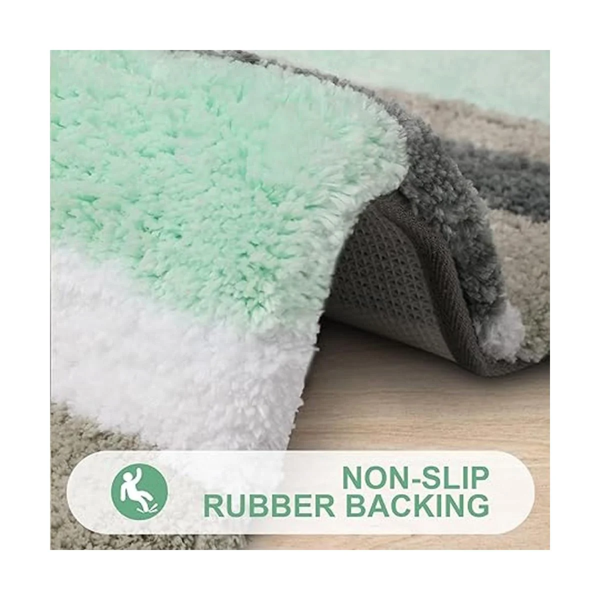 Buganda Alfombra de baño de microfibra a rayas, extra gruesa, suave y peluda, absorbente, lavable a máquina, antideslizante, para baño, bañera y ducha, 16 x 24 pulgadas, color verde y gris