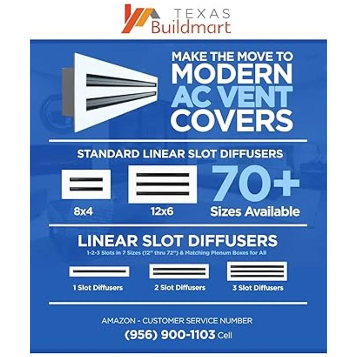 BUILDMART Cubierta de ventilación de CA moderna de 26 x 6 pulgadas, ventilación de aire decorativa, difusor de ranura lineal estándar de Texas, registros, rejillas y rejillas de ventilación para techos, paredes y suelos, color blanco, Blanco, Neck 25 916 x 5 78 Face 27 12 x 7 78