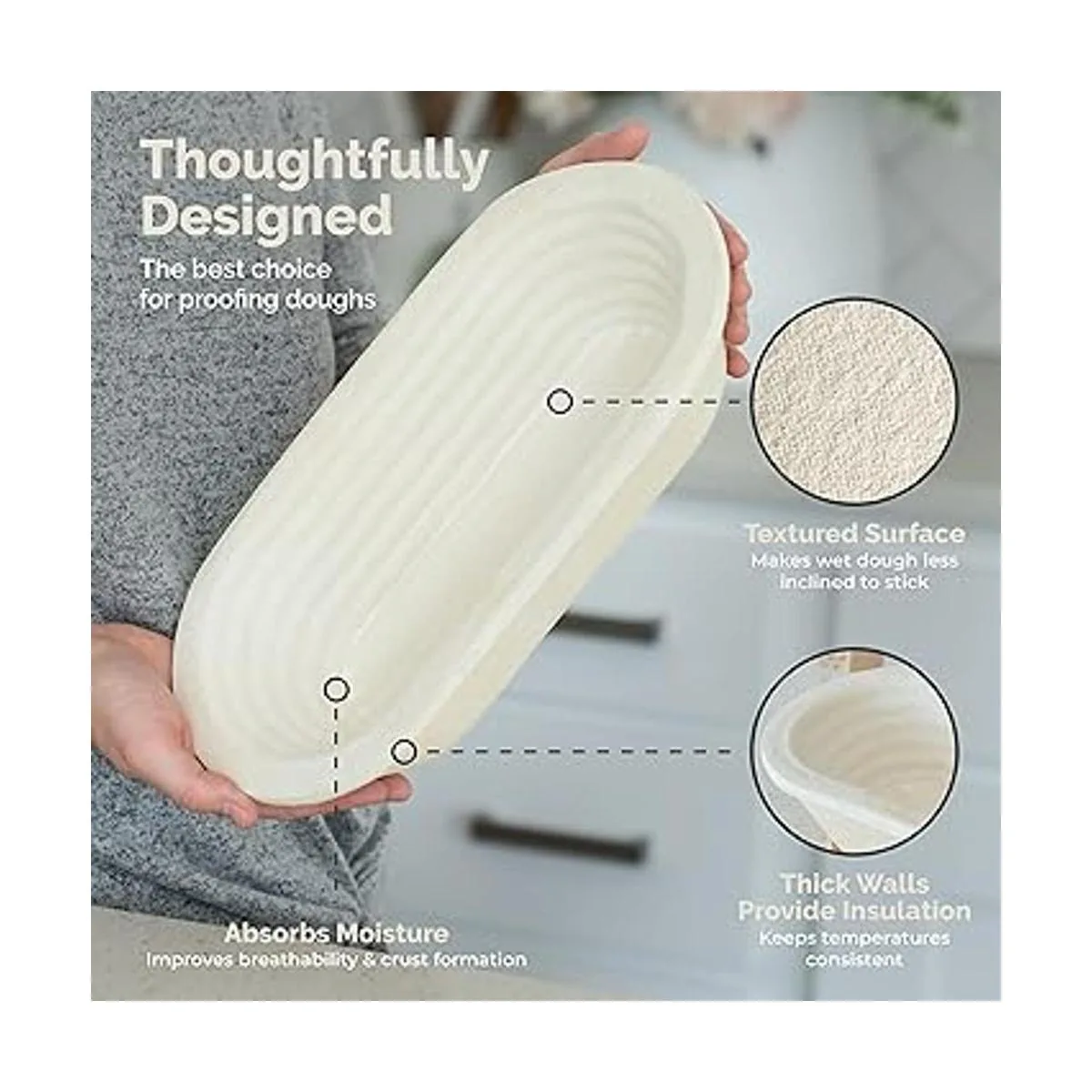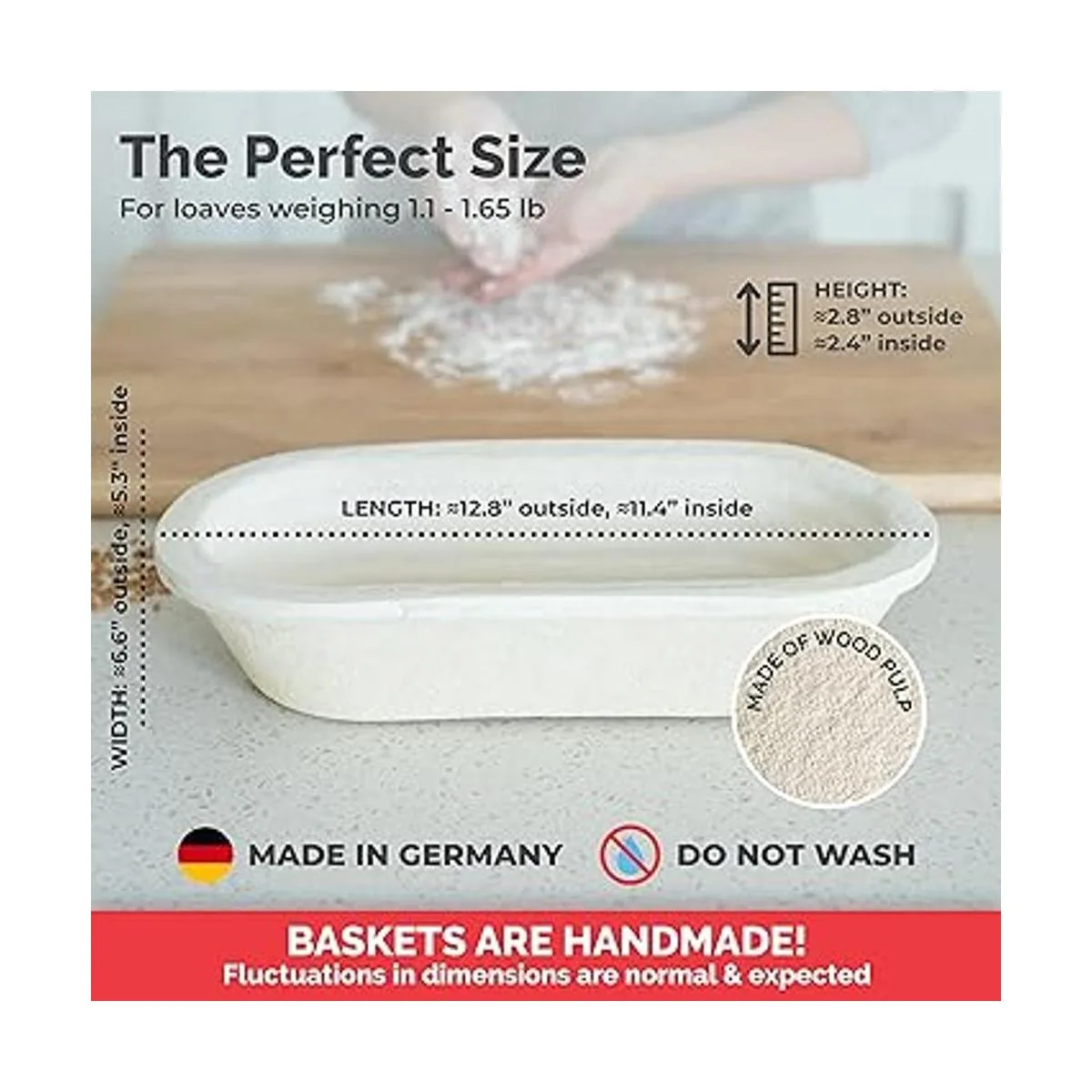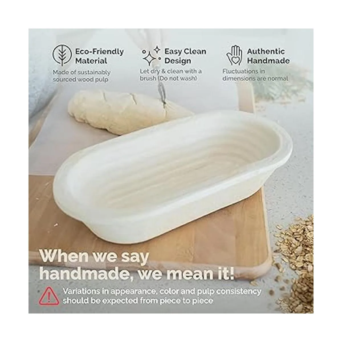Bulka Cesta ovalada Banneton a prueba de pan, pulpa de madera de abeto, ranura de 26.46 oz, cuenco de prueba de masa de batardo antiadherente para hacer pan, panes artesanales, hecho en Alemania.