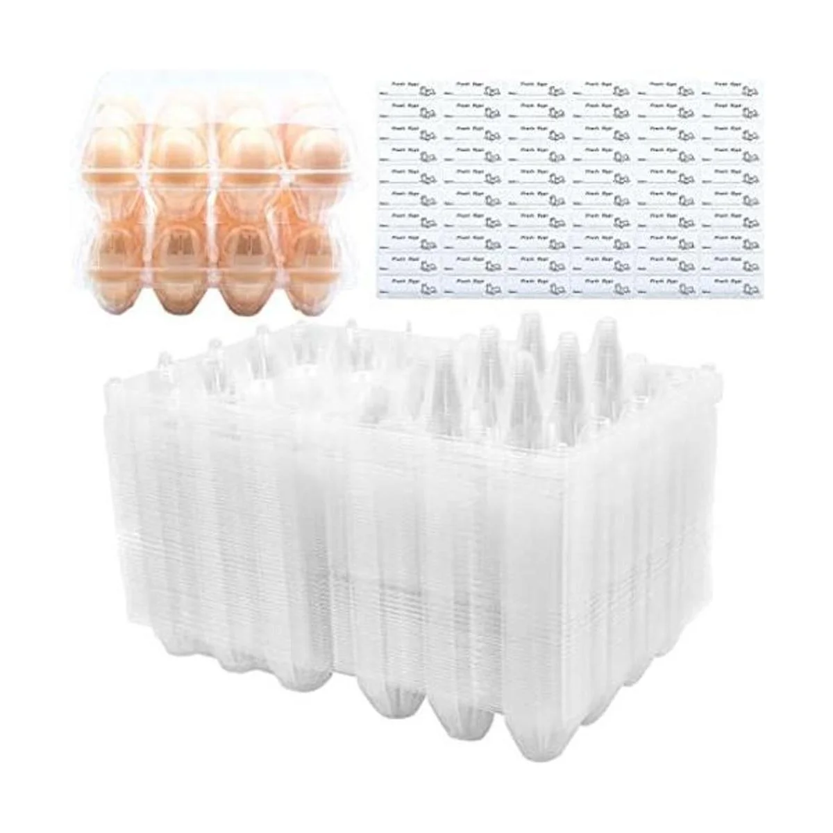 BULKBUY Cajas de huevos de 60 paquetes, cajas de huevos en blanco de plástico transparente ecológico con etiquetas gratis, capacidad para hasta 12 huevos de forma segura, perfecto para exhibición de mercados de granjas familiares de pastos, tamaño mediano