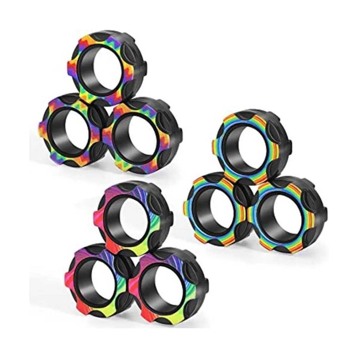 Anillos magnéticos más recientes, 9 anillos incluyendo 3 ondas de agua, 3 piezas coloridas, 3 piezas arcoíris. Con un colorido juguete mágico para inquietos, muchas personas han frenado con éxito hábitos no deseados como morderse las uñas, fumar. Disfruta de un buen rato.