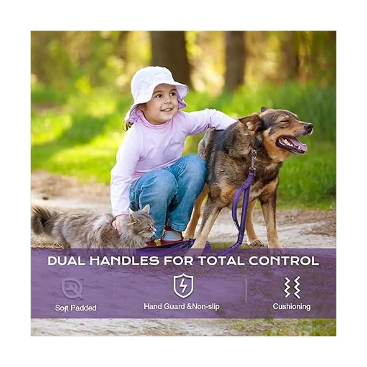 Asas acolchadas duales: nuestra correa para perro está diseñada con neopreno suave y mango acolchado, simplemente disfruta de la sensación de paseos con tu perro y protege tu mano de quemaduras de cuerda. Equipado con un mango de tráfico adicional, asas dobles para un control total. Protege siempre la seguridad de tu querido compañero de cuatro patas