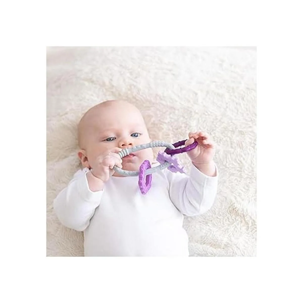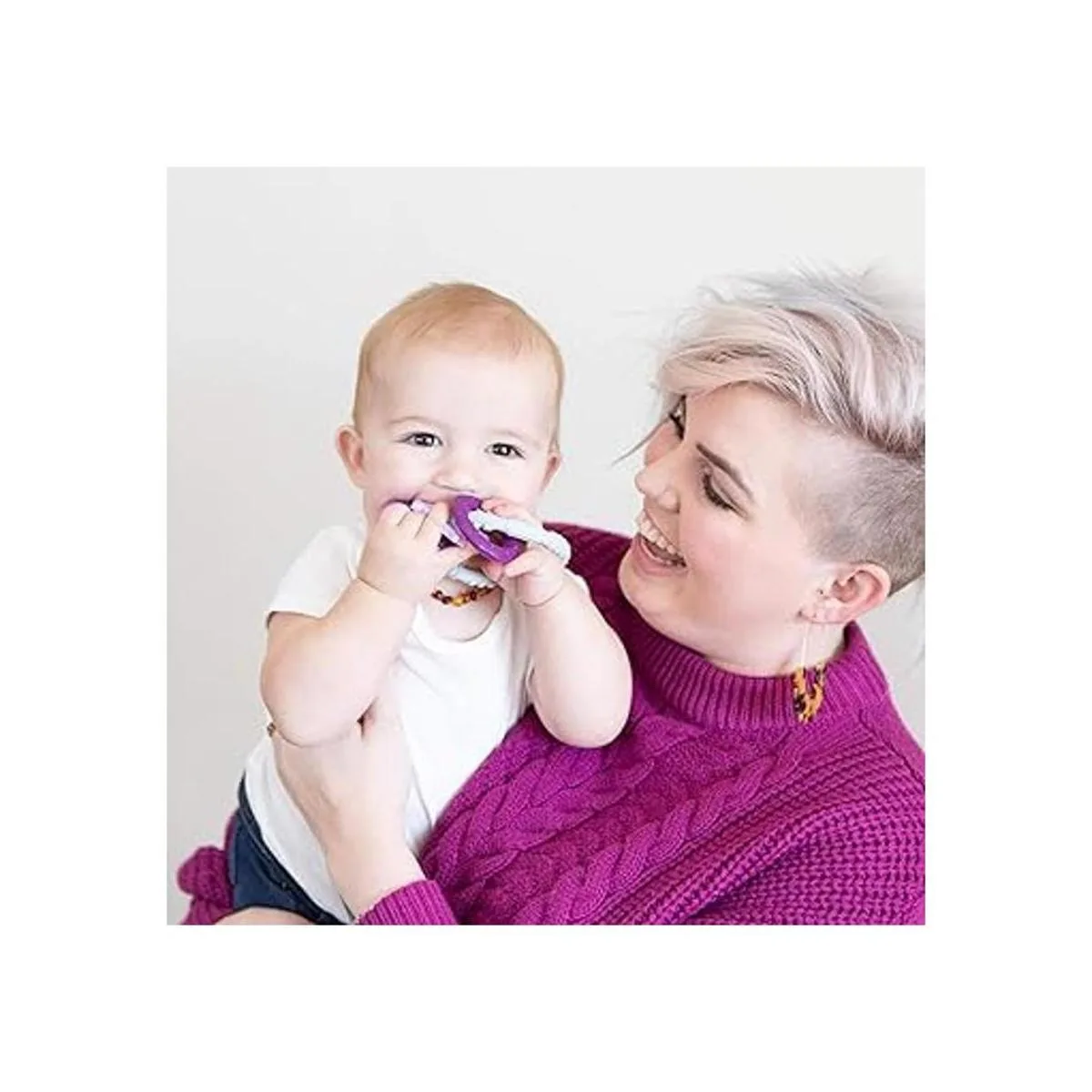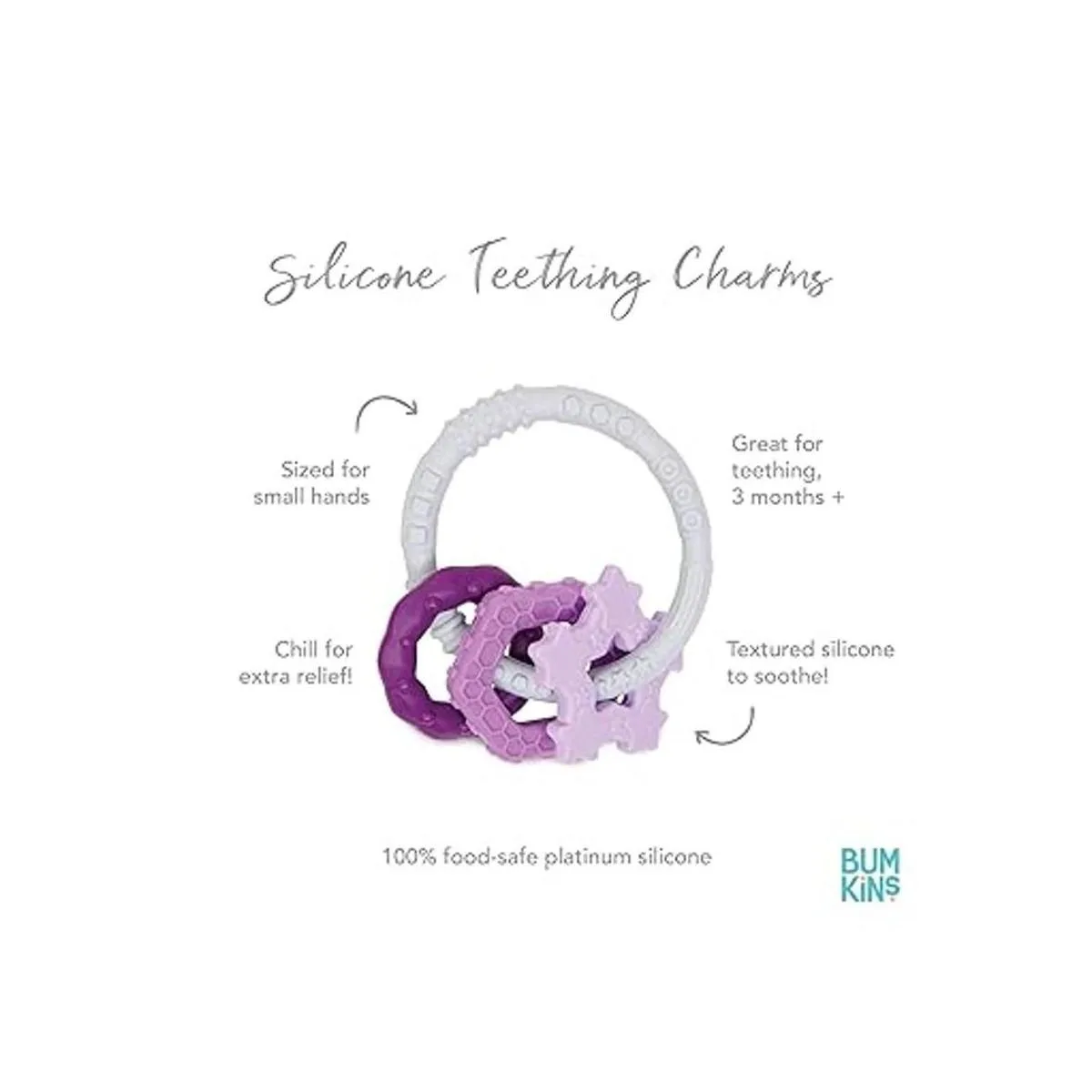 Bumkins Anillo de dentición de silicona con encantos, sensorial, calmante de las encías, bebés de 3 meses morado