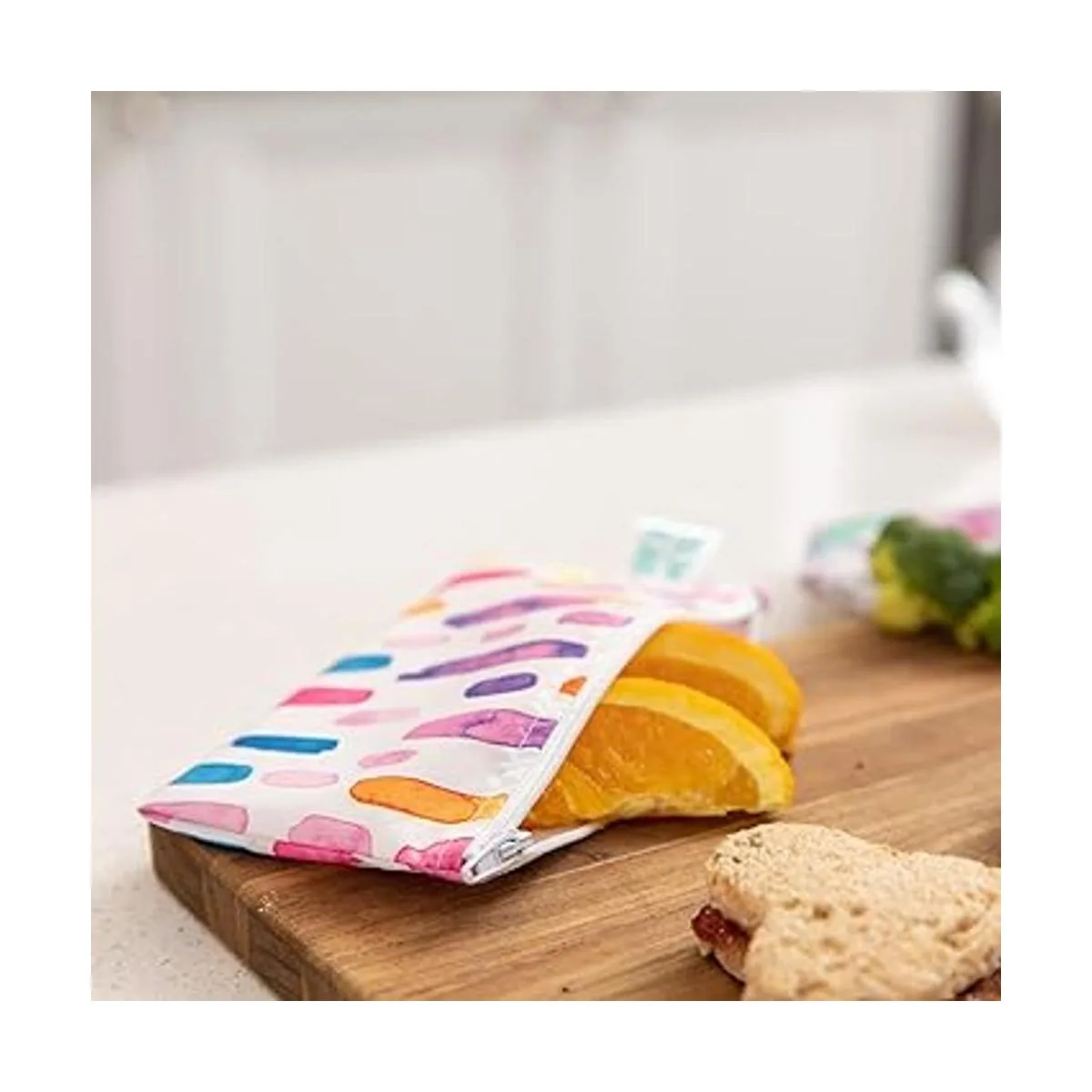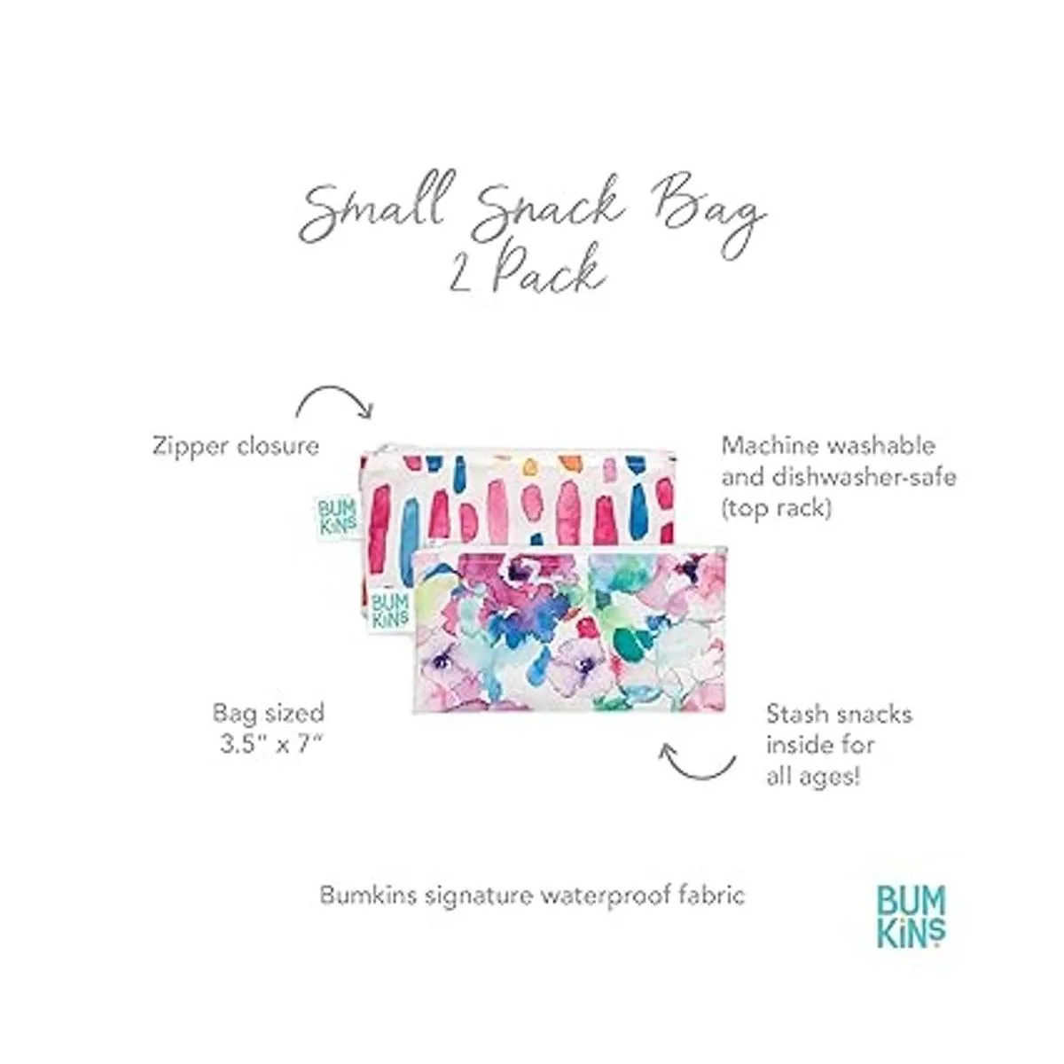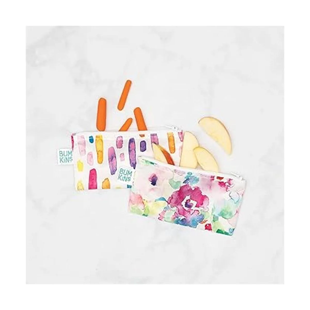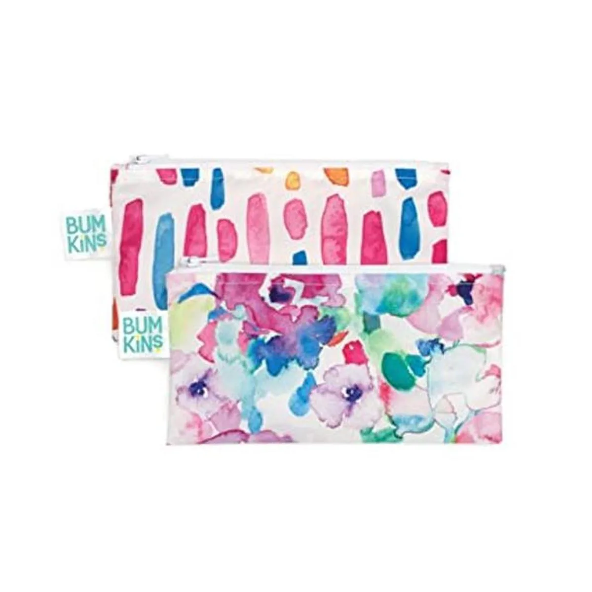 Bumkins Bolsas de aperitivos, tela reutilizable, lavable, apta para alimentos, sin BPA, acuarela y pinceladas paquete de 2