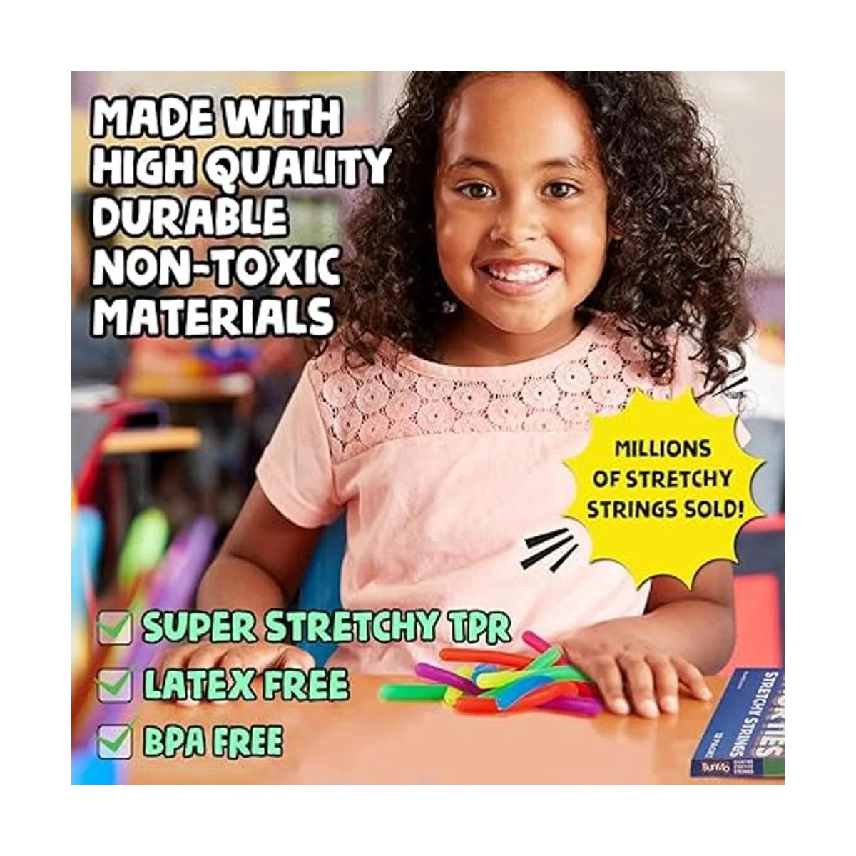 Emocionante juguete sensorial: nuestras cuerdas elásticas Shortties proporcionan estimulación táctil para ayudar con el desarrollo de habilidades motoras finas. Jugar con ellos no produce ruido, lo que los convierte en los juguetes silenciosos perfectos y juguetes sensoriales para niños autistas. Aumenta la fuerza de la mano y el brazo simplemente inquietando con este paquete de juguetes para ansiedad