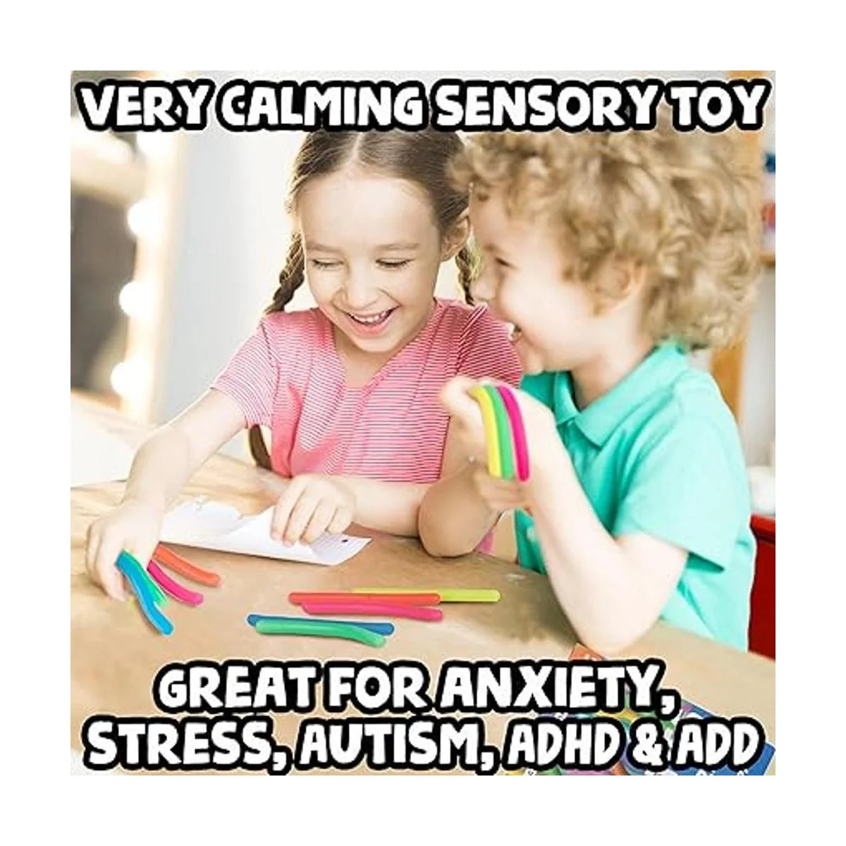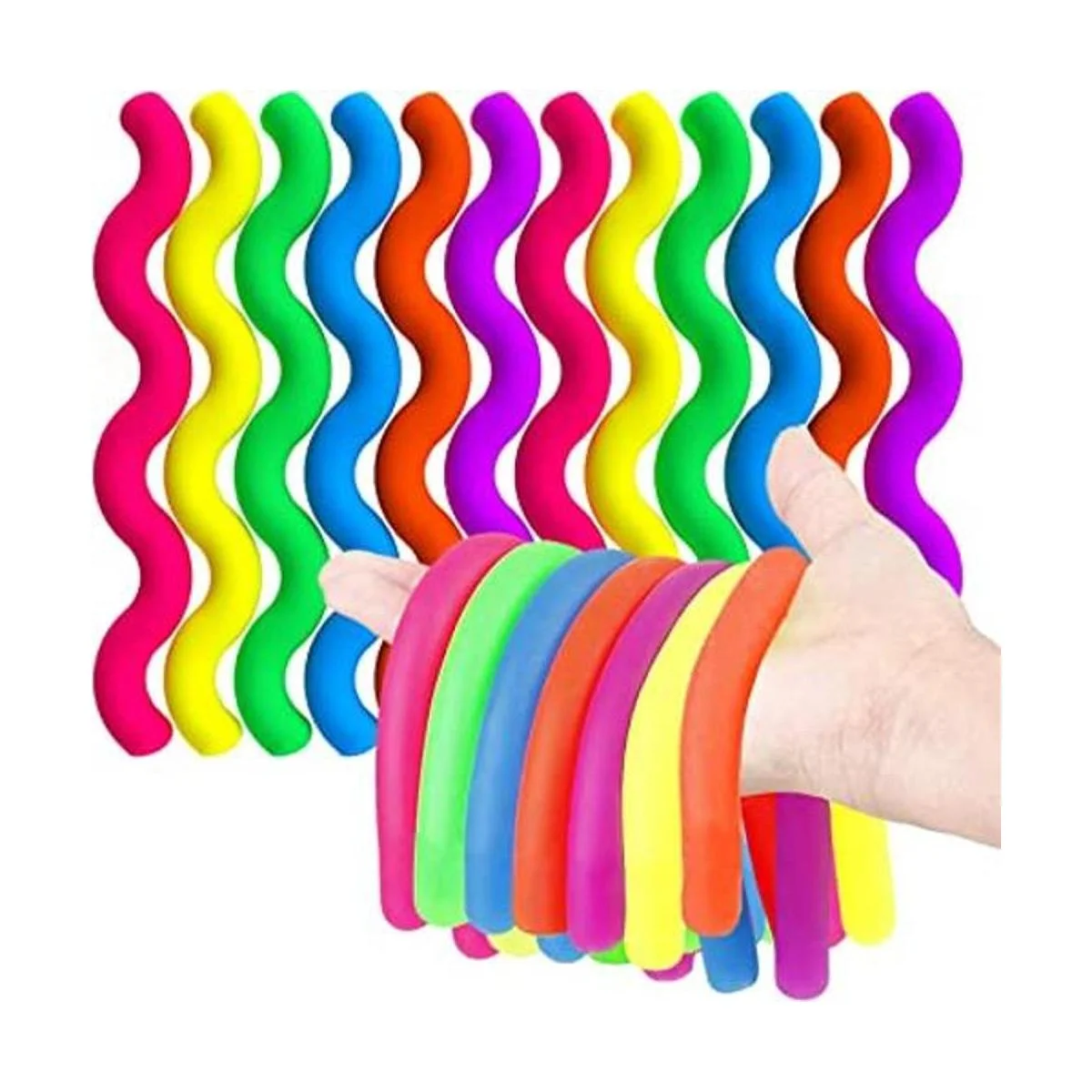 Felicidad enfocada: BUNMO crea juguetes sensoriales que todos pueden disfrutar. Estas 12 piezas de cuerdas hipoalergénicas y no tóxicas añaden perfectamente a tu colección de tubos pop, anillos para ansiedad y nuestros otros juguetes para ansiedad. Mantén las manos ocupadas, enfrenta la ansiedad y diviértete tirándolo, girándolo y amándolo. Haz sonreír a esa persona especial con este gran fideo pequeño.