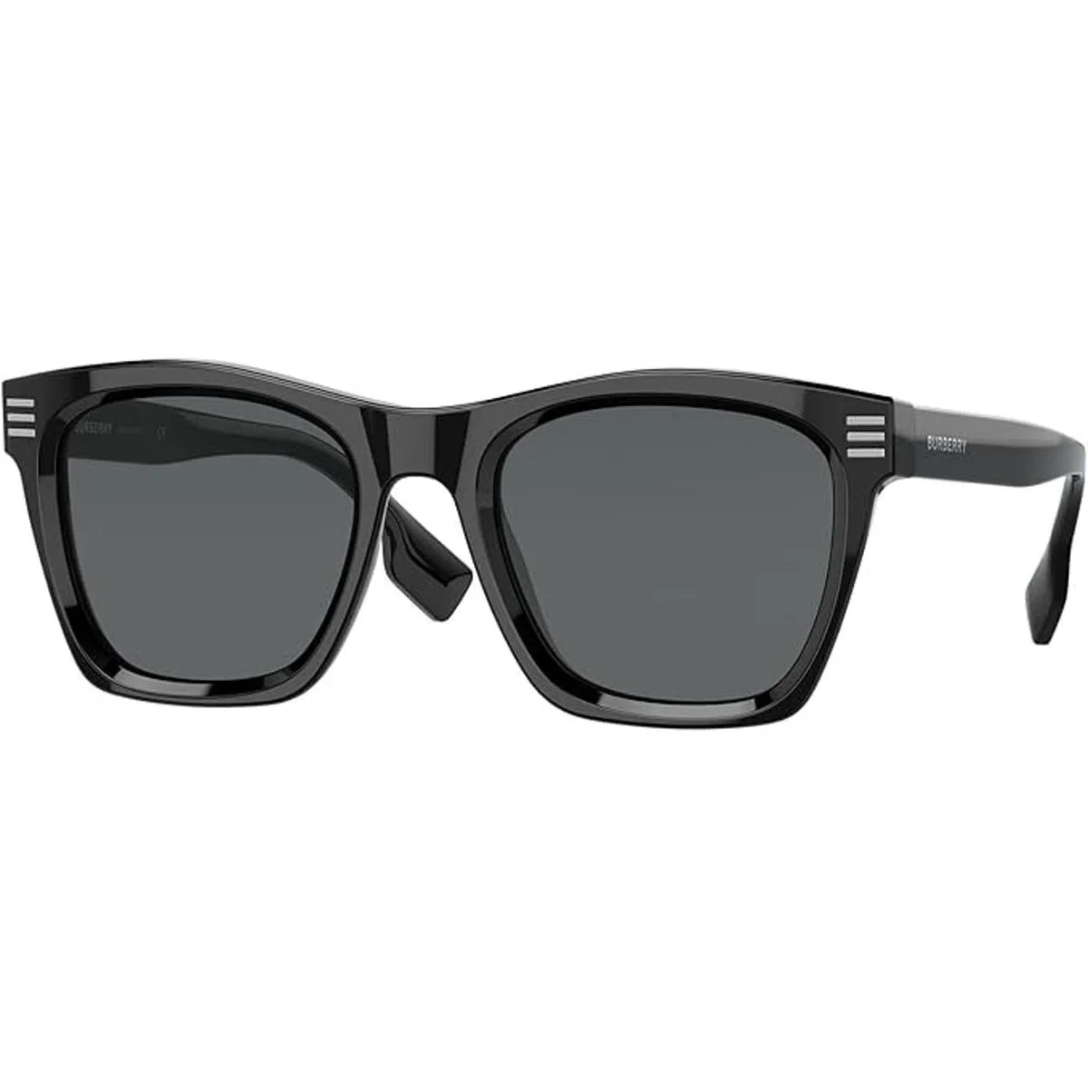 Gafas de sol Burberry. Serie Cooper. Número de serie: BE4348. Código de color: 300187. Talla: 52. Forma: cuadrado. Ancho de la lente: 2.047 in. Puente de la lente: 0.827 in. Longitud del brazo: 5.709 in. 100 protección UV. Material del marco: acetato. Color del marco: negro. Tipo de lentes: gris oscuro. Estilo de llanta: borde completo. Código UPC/EAN: 8056597489768. Burberry Cooper BE4348 300187 52 Gafas de sol cuadradas color gris oscuro