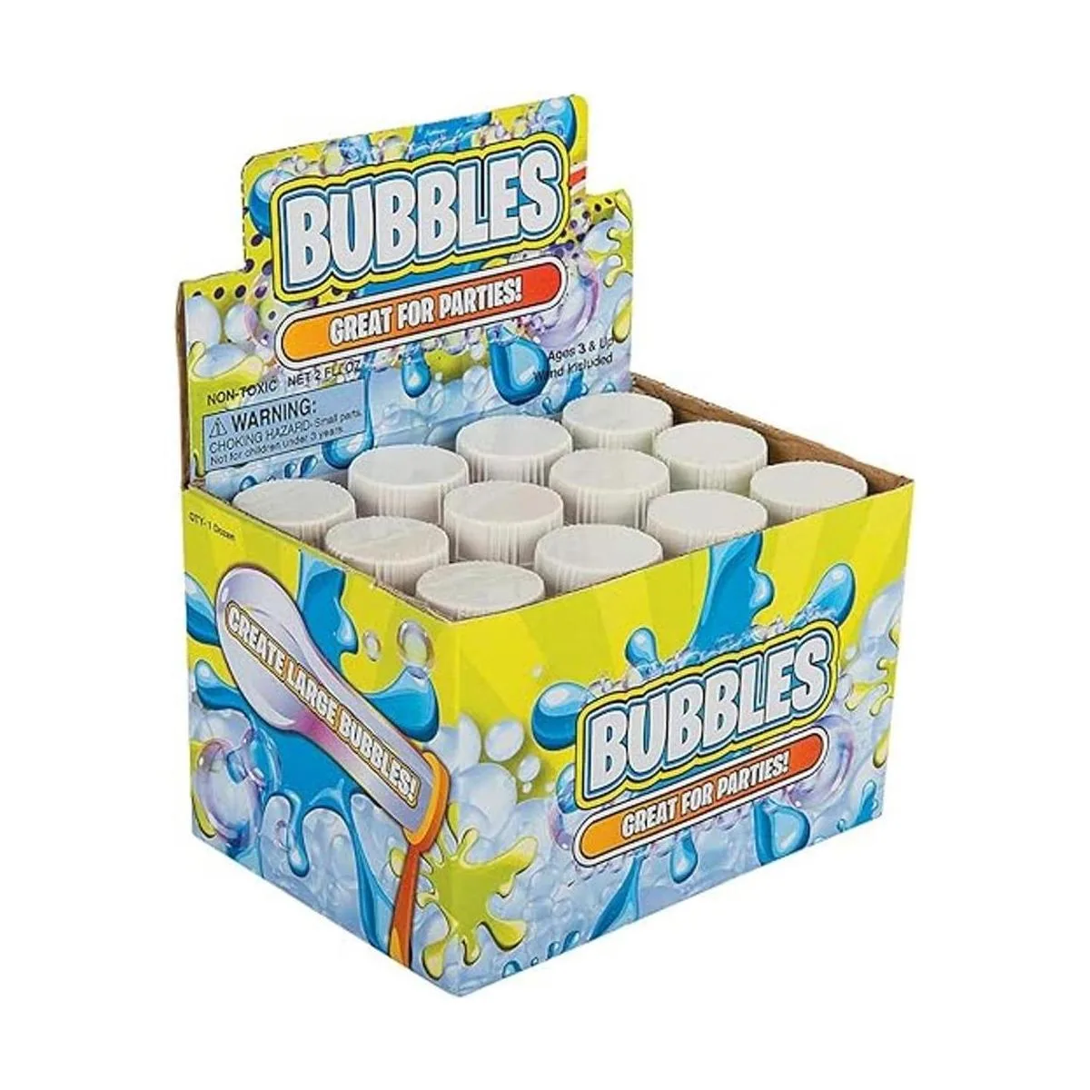 Increíble Burbujas de fiesta a granel para niños: cada pedido de nuestras burbujas para niños y niños pequeños incluye un total de 24 botellas de burbujas. Las botellas miden 3.5 pulgadas de alto y contienen 2 onzas de solución de burbujas. Los colores neón surtidos llegarán perfectamente empaquetados en una caja de exhibición resistente y los colores incluyen azul, morado, amarillo y rosa. Cada botella incluye su propia varita de burbujas en el interior