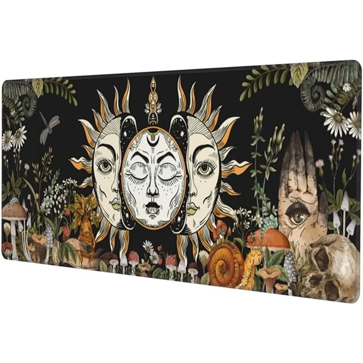 Burning Sun God Witchcraft Alfombrilla de mouse para juegos XL, alfombrilla de mouse grande extendida, alfombrilla de mouse larga y antideslizante con bordes cosidos, tapete de juego para oficina y hogar, 31.5 x 11.8 pulgadas