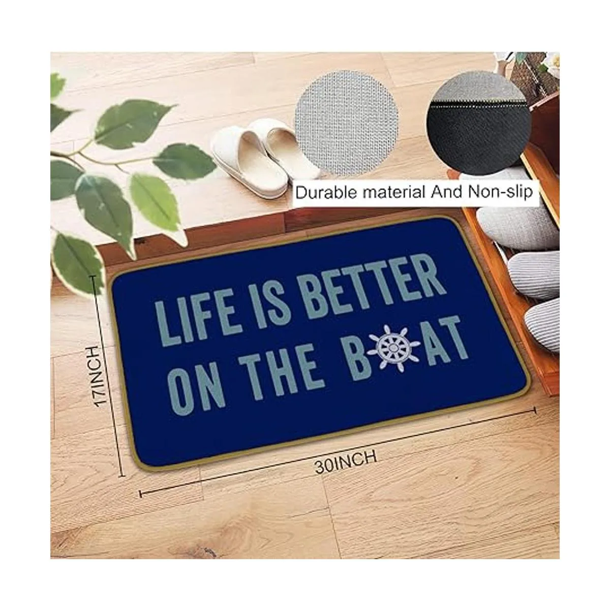 Burosev Life is Better On The Boat Felpudo decorativo para el suelo, color azul marino, para barco, temática náutica, decoración de granja, para el hogar, interior, exterior, porche, puerta delantera 17 x 30 pulgadas