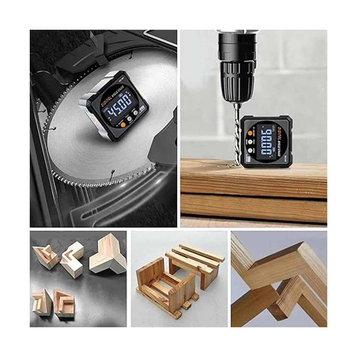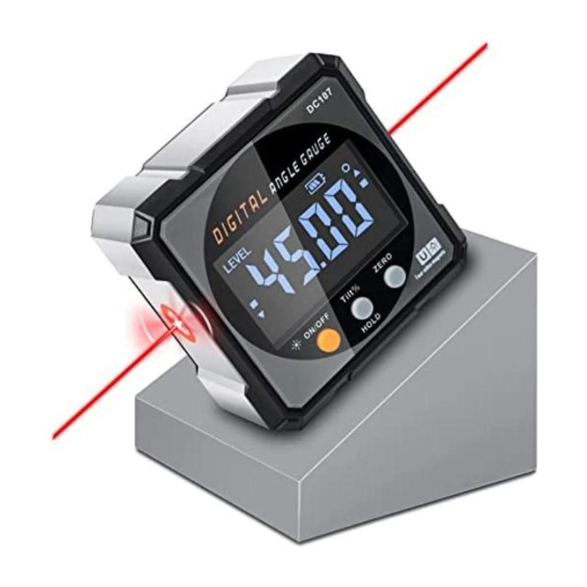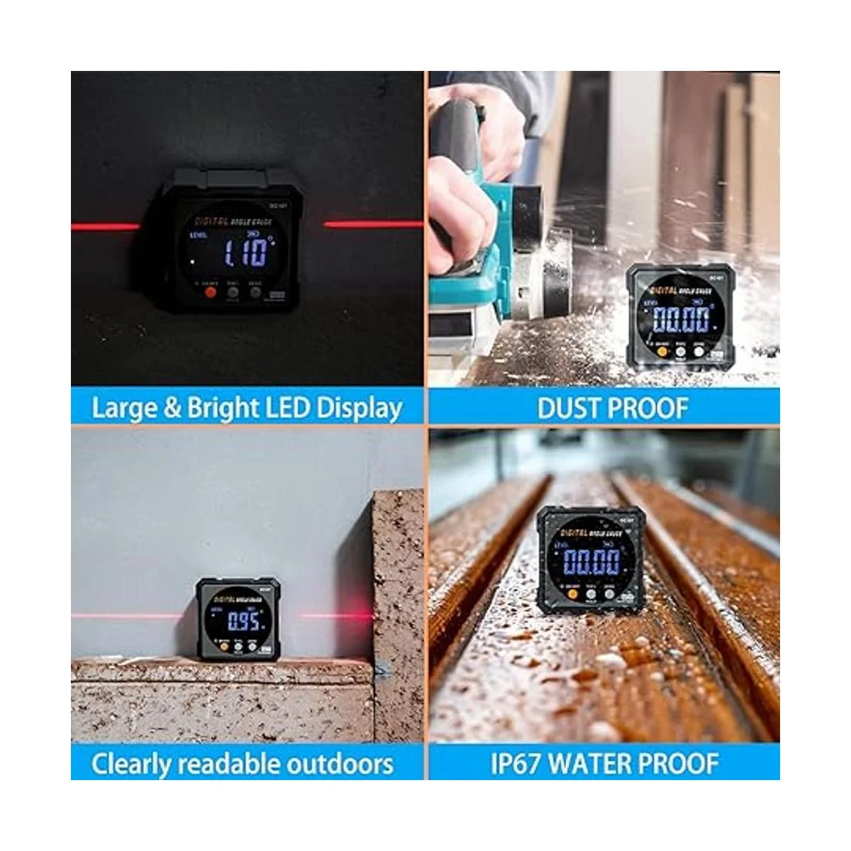 Buscador de ángulo digital con láser electrónico, calibre de ángulo magnético fuerte de 4 lados, inclinómetro de cubo con retroiluminación, transportador de ingletes de sierra de mesa, herramienta de medición de carpintería, caja de nivel para colgar