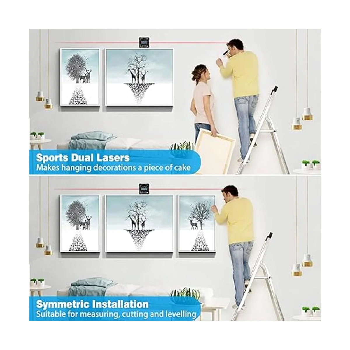 Ahorra tiempo y esfuerzo para colgar decoraciones Los láseres dobles son un gran ayudante para una instalación horizontal y simétrica. Además, esta caja de nivel digital puede ser un gran regalo para el día del padre, cumpleaños, Navidad.