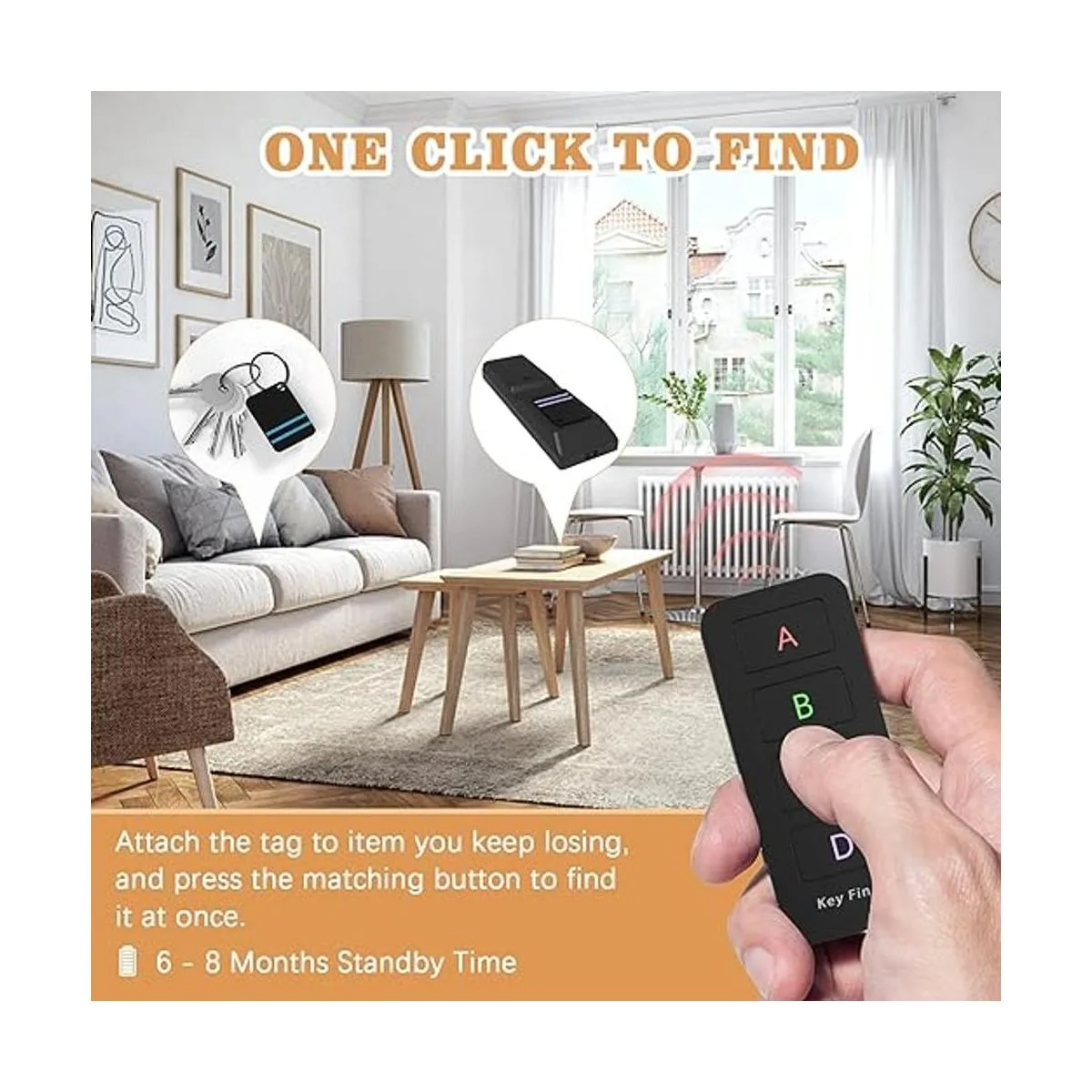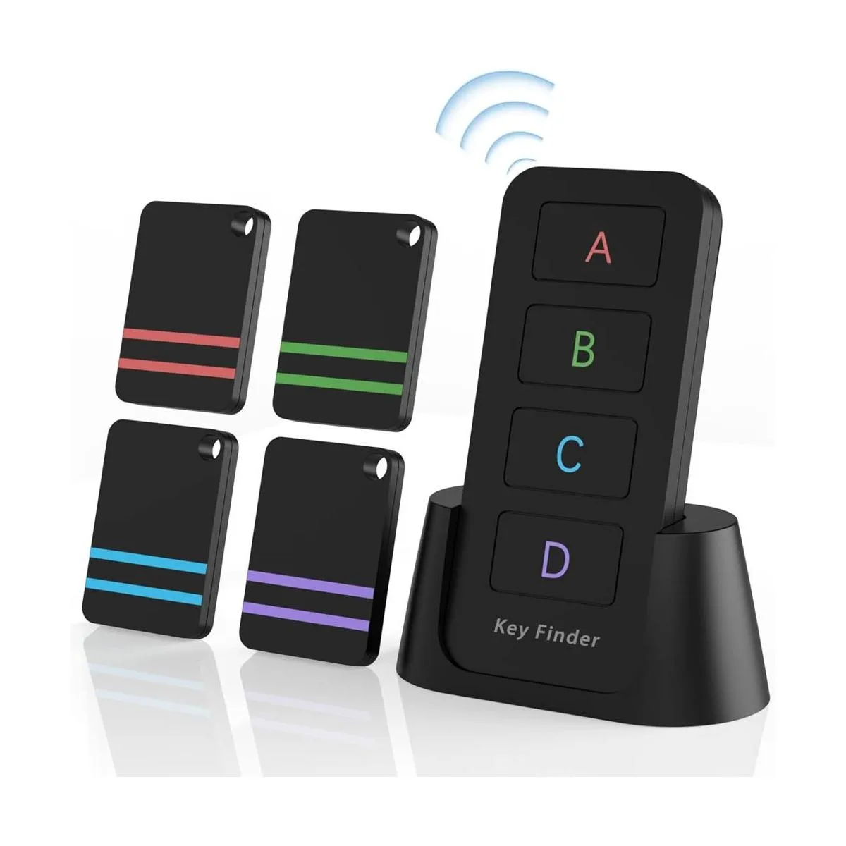 Buscador de control remoto, paquete de 4 dispositivos Find My Keys Pegar en el buscador remoto, etiquetas de rastreador para llaves de automóvil y teléfonos Localizador de llaves RF de 80 dB, buscadores de llaves perdidos que hacen ruido