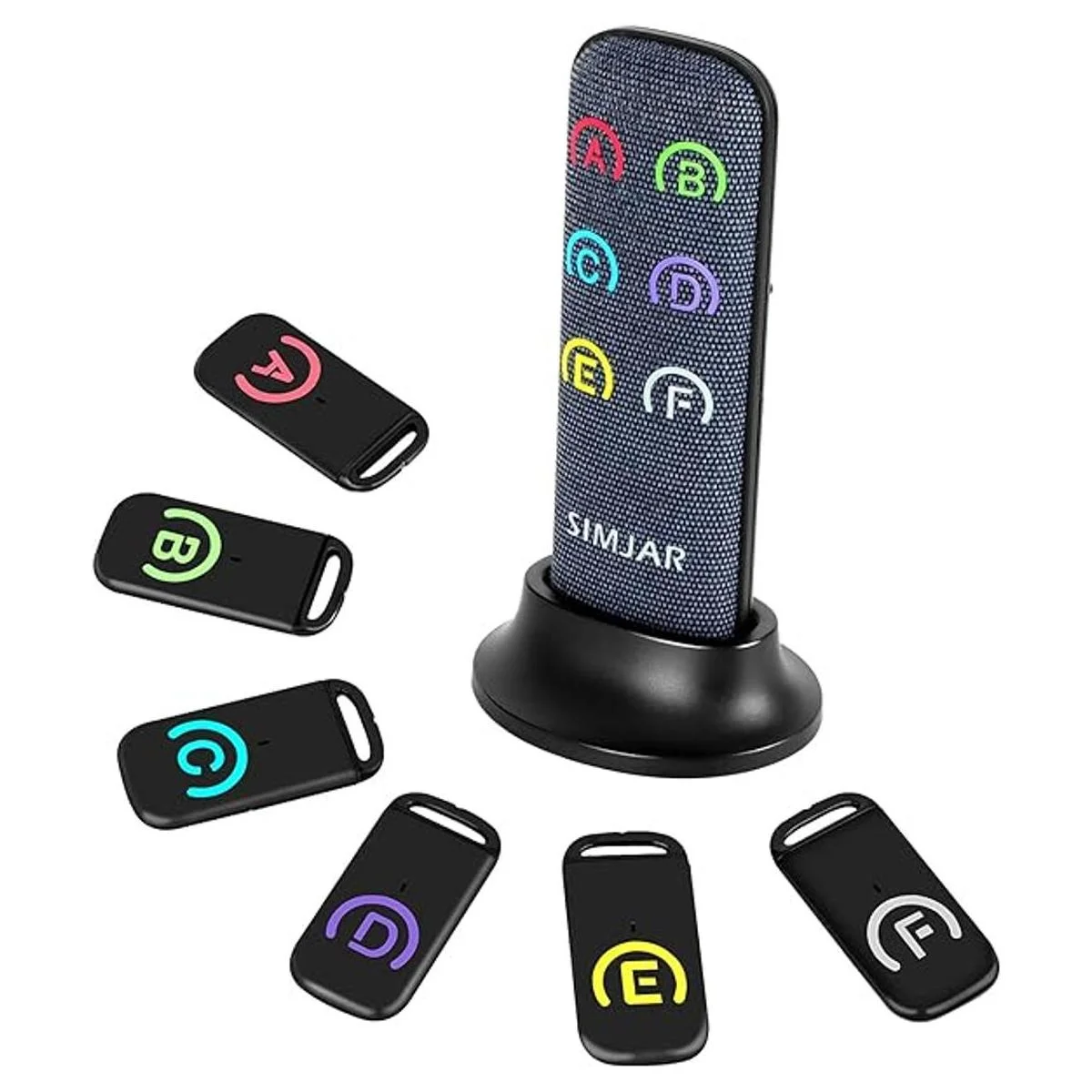 Buscador de llaves con receptores más delgados y control remoto avanzado de tela, Simjar 80dB localizador de artículos RF con rango de trabajo de 131 pies, 1 transmisor RF y 6 receptores