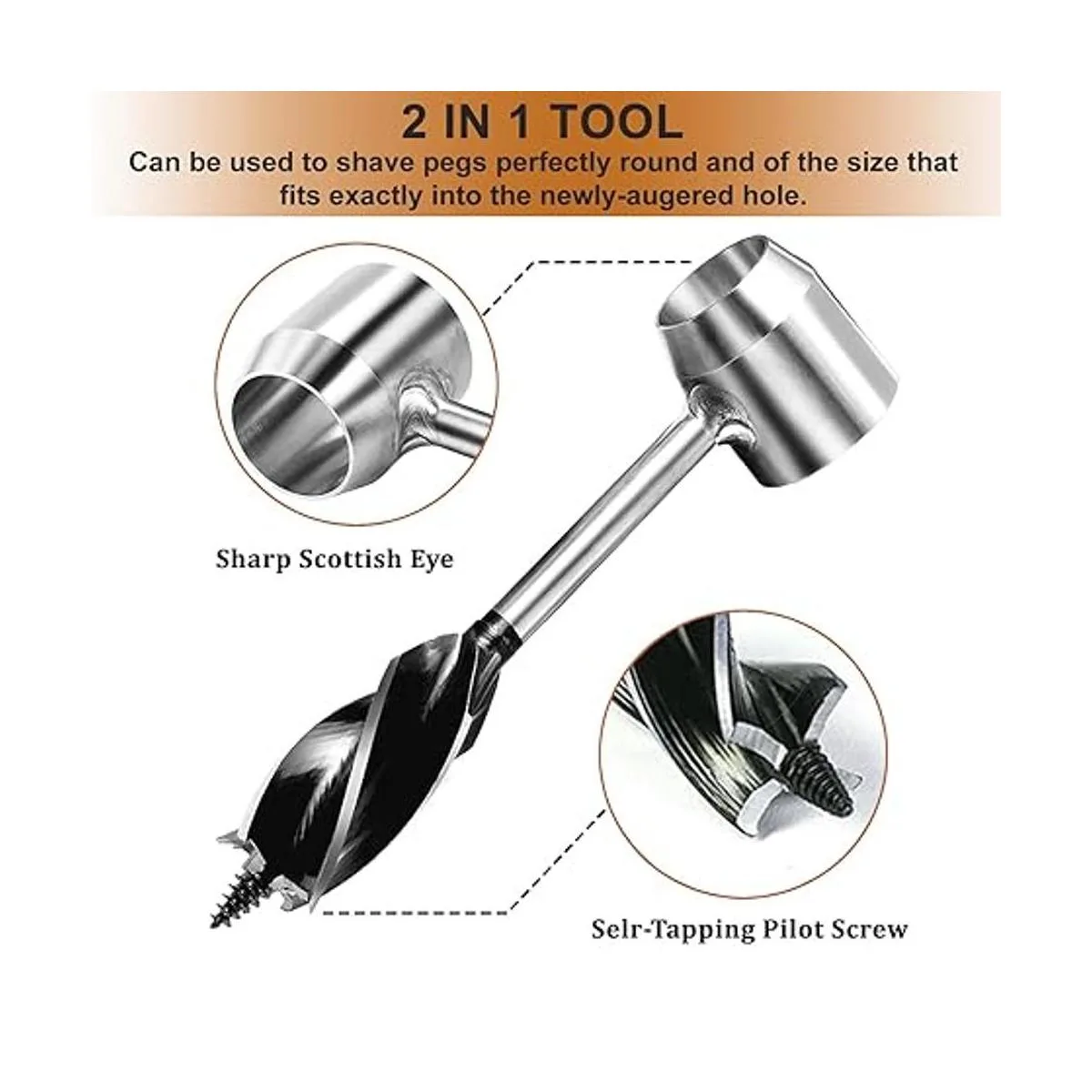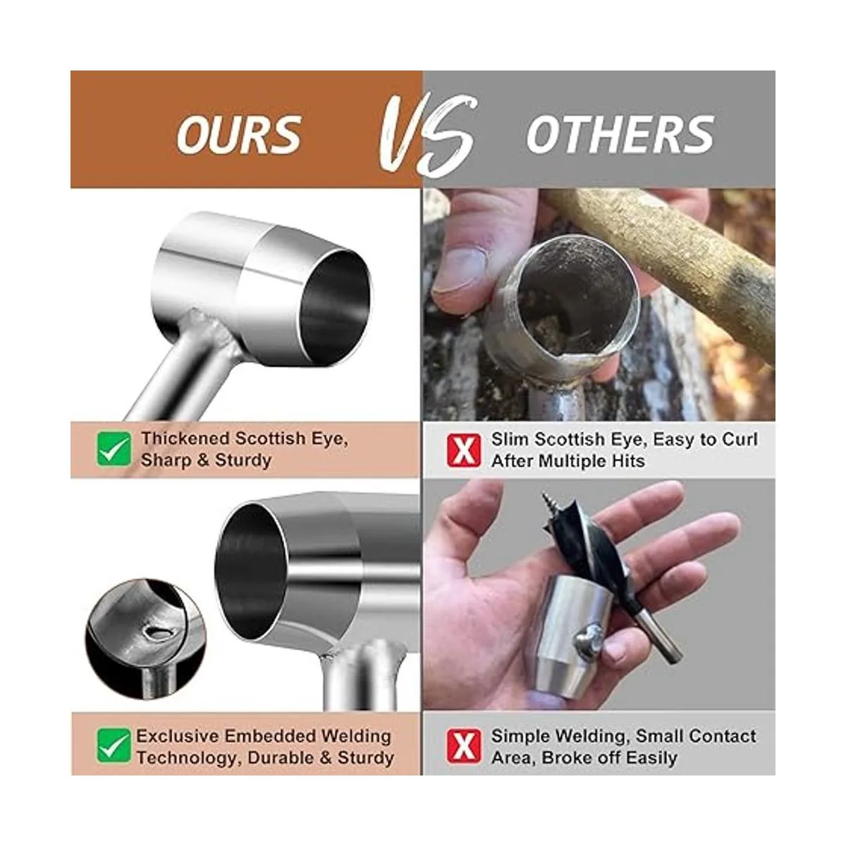 Compacto y práctico: utiliza un palo a través del ojo para apalancamiento haciendo que el taladro de taladro de ojo escocés sea fácil de perforar un agujero, luego utiliza una envoltura protectora para proteger tus manos de cortes y te permite hacer clavijas de madera más cómodamente y rápidamente cuando se utiliza el cortador de ojos escocesa afilado para martillar en una rama para una clavija del mismo tamaño que el agujero perforado antes