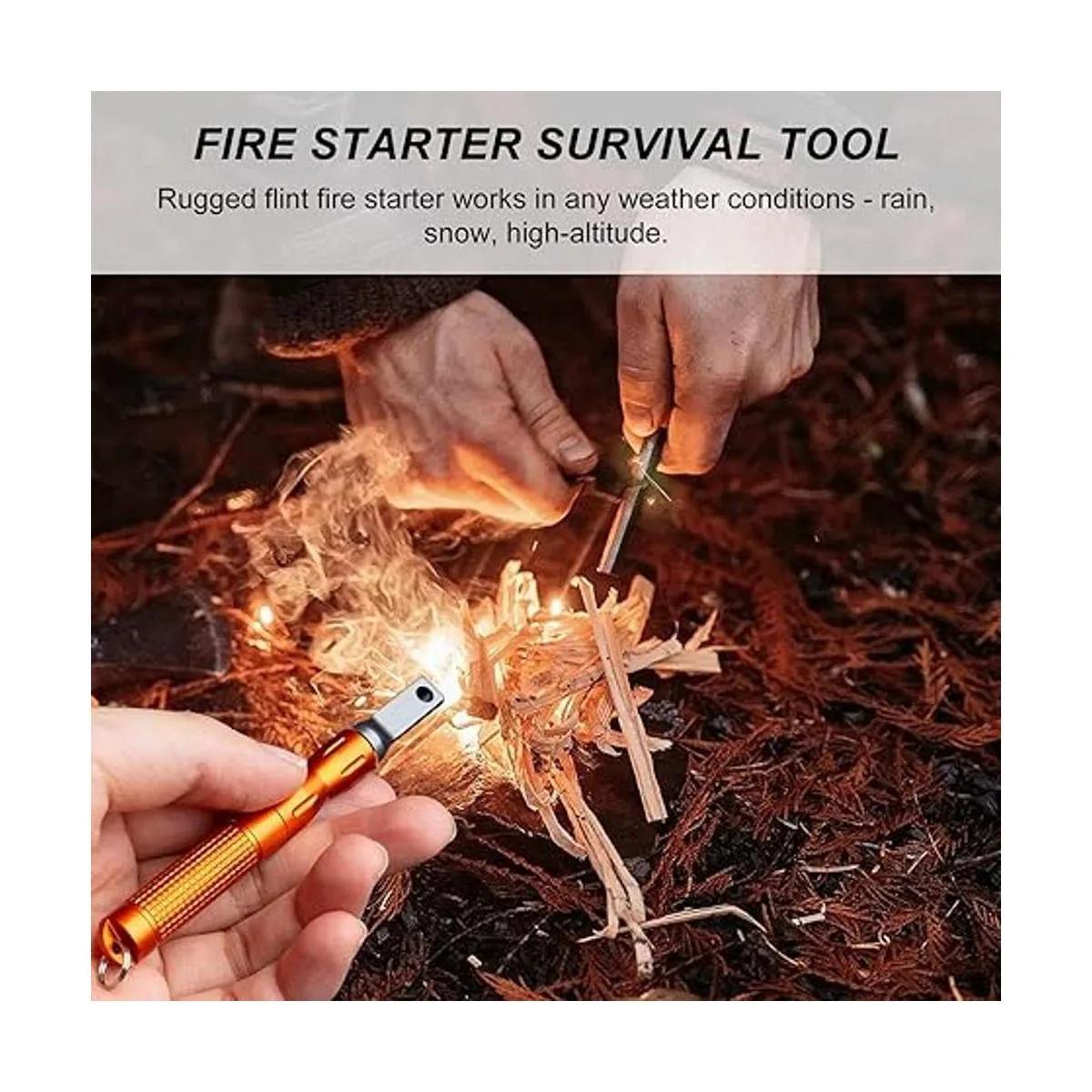 Bushcraft Gear para colonos de supervivencia, llave de mano Bushscraft con pedernal, clavija de taladro de madera de ojo escocés y fabricante de agujeros manuales, multiherramienta con estuche de cuero, para campamento, para hacer manualidades y mochileros al aire libre