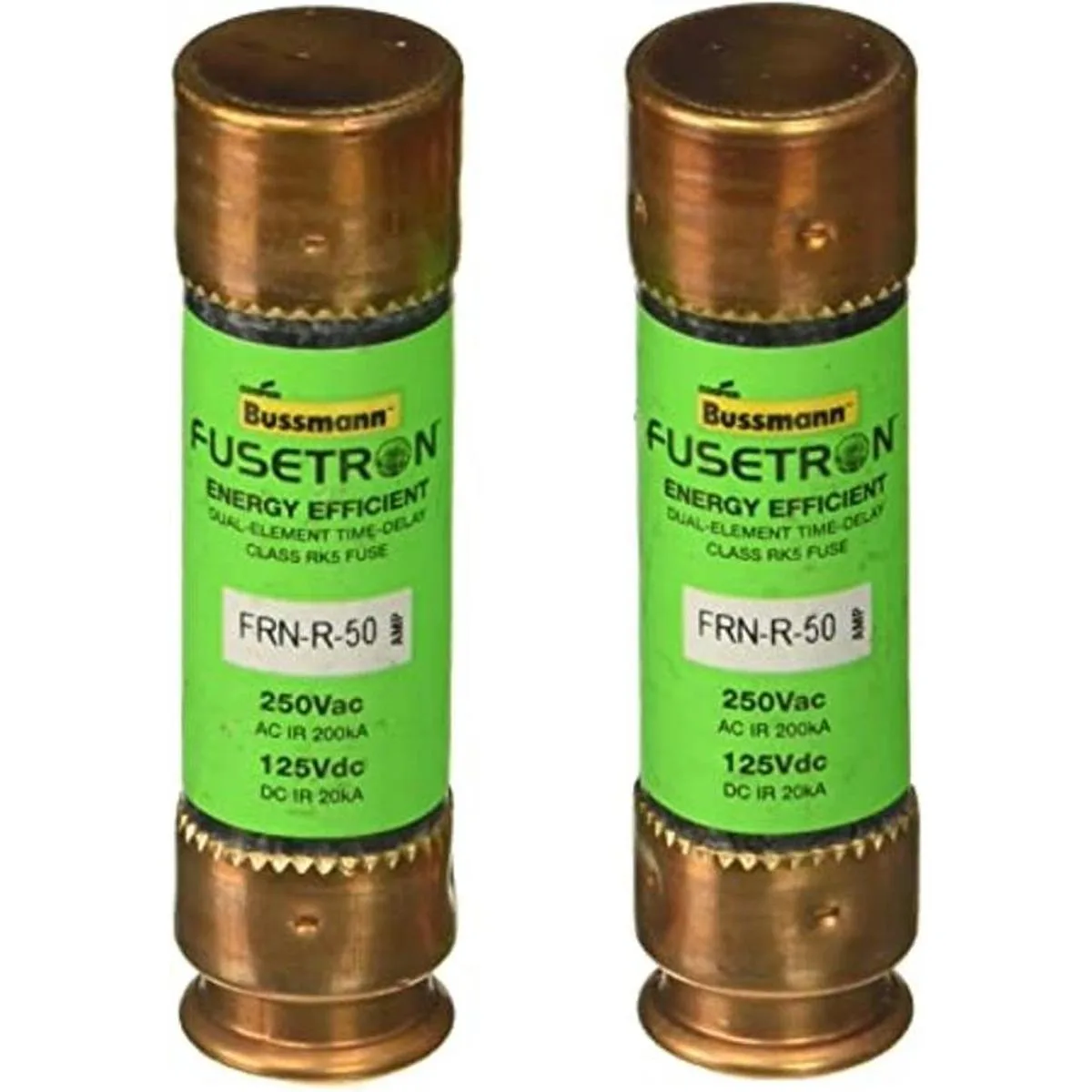 Bussmann BPFRNR50 50 Amp Fusetrón de doble elemento de tiempo de retardo de corriente limitadora de clase RK5, 250 V cardado UL, paquete de 2