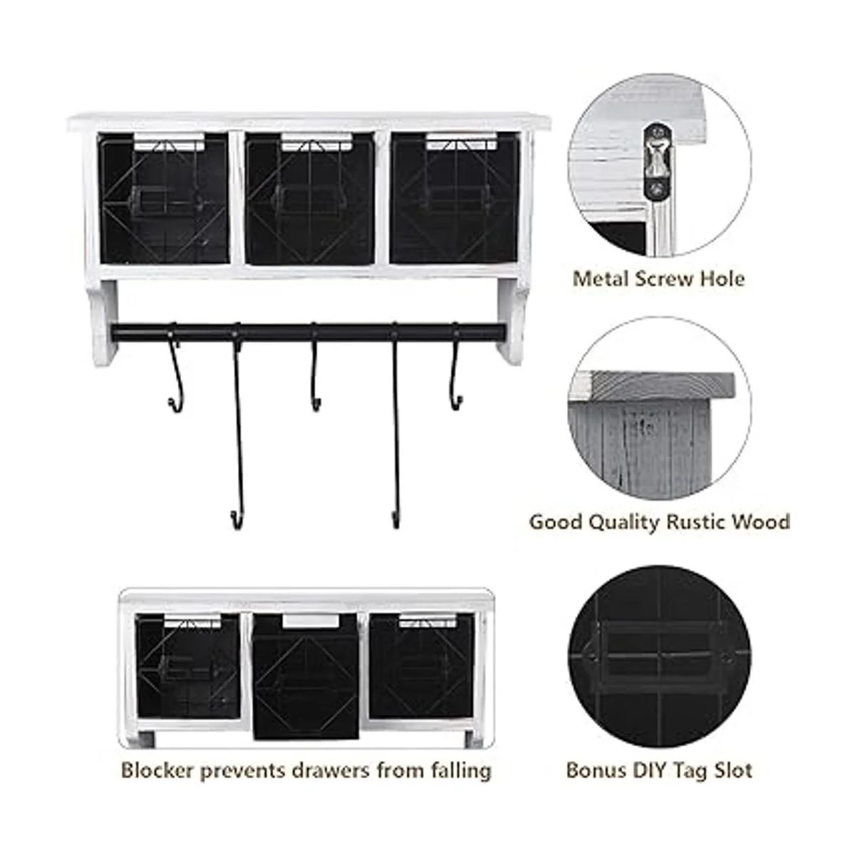 Diseño único: viene con 3 cajones separados, puede proporcionar un almacenamiento cómodo, ideal para guardar tarros pequeños, bolsas de azúcar, café, bolas de leche. Fácil de sacar y el diseño de bloqueador también evita que se caiga, hace que tu hogar y entrada estén limpios y ordenados.