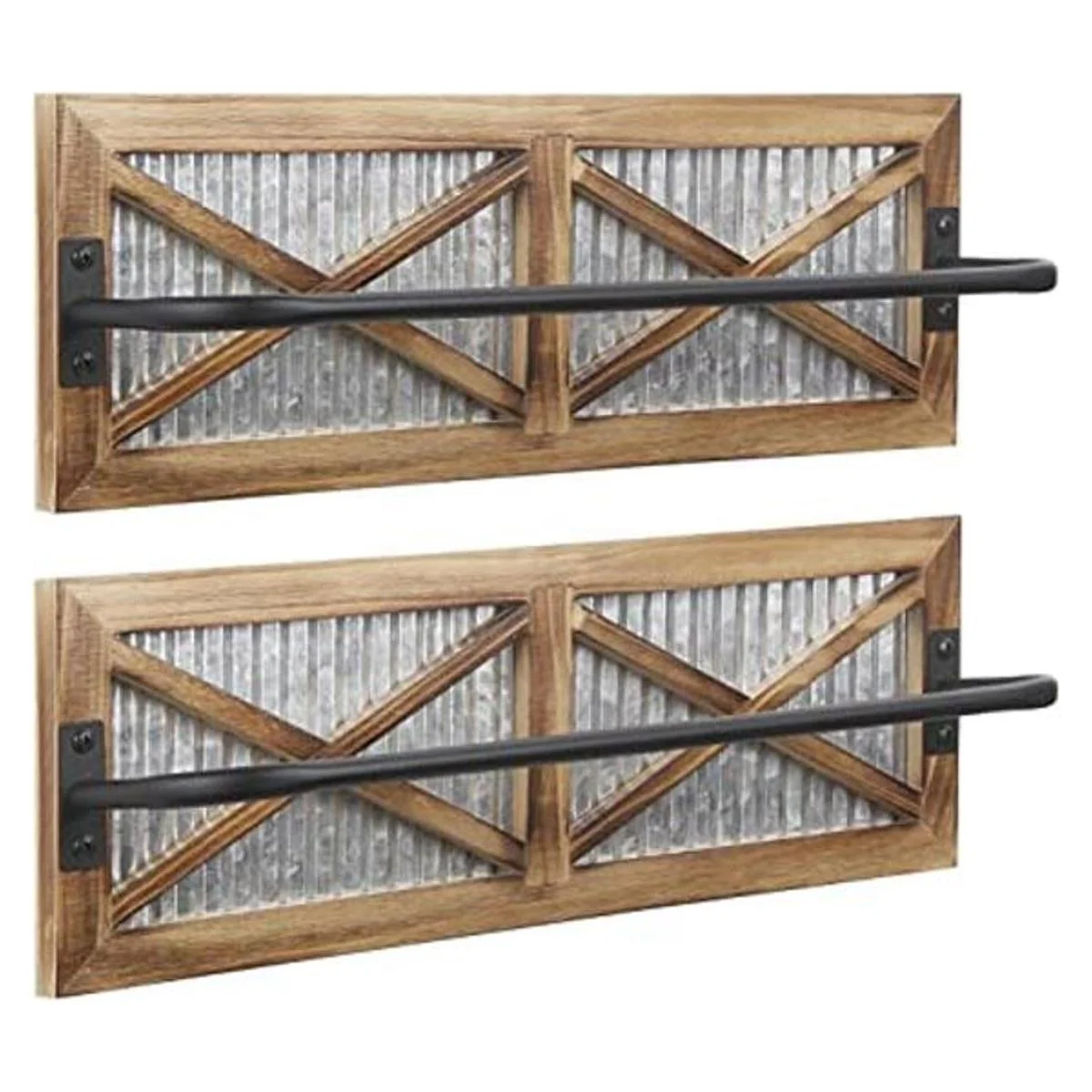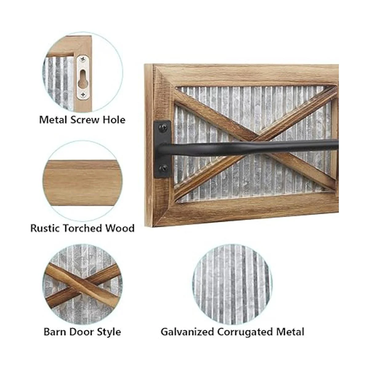 Butizone Toallero de baño rústico, soporte de toalla para montar en la pared con madera desgastada y metal galvanizado corrugado, estante de granja para colgar toallas las toallas no están incluidas