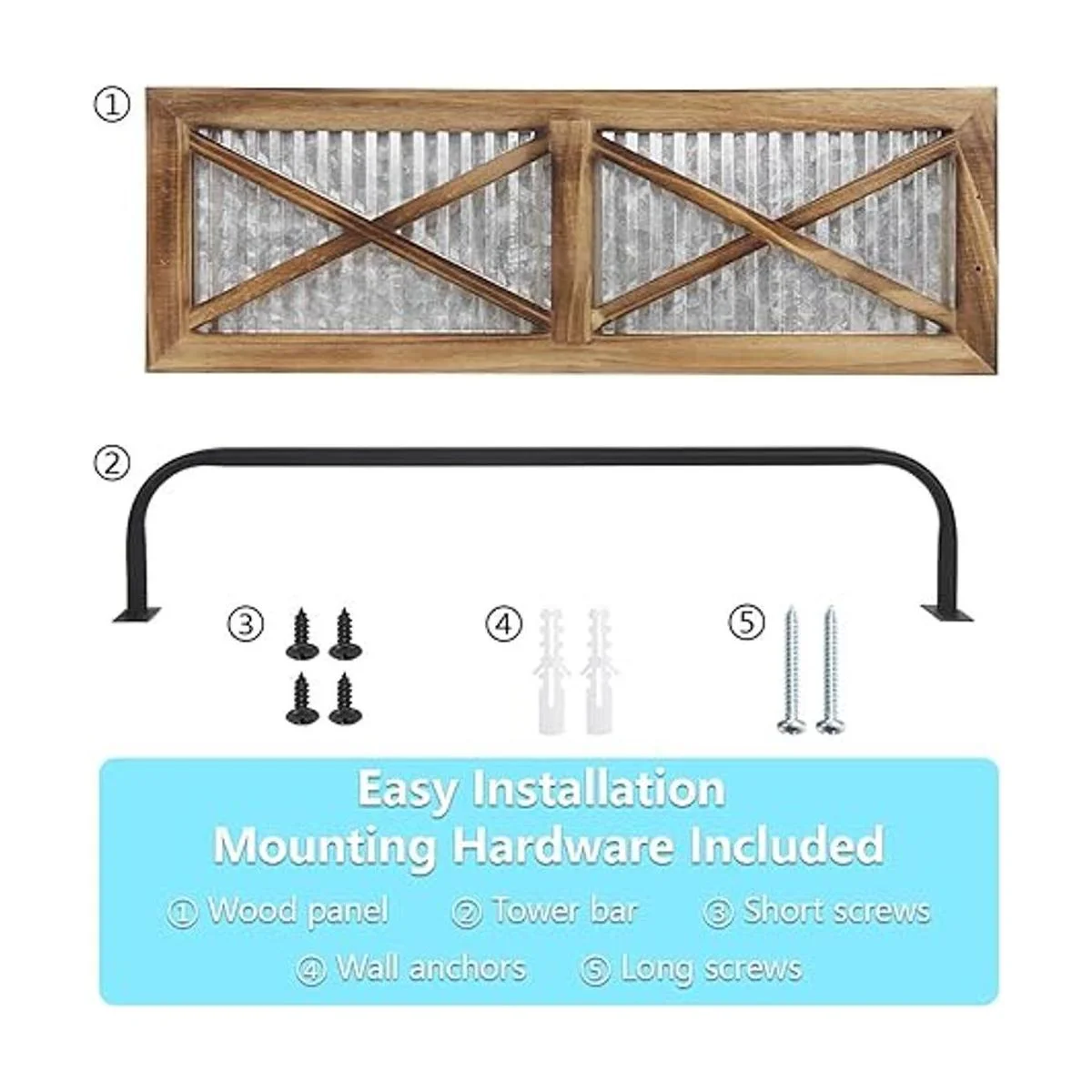 Diseño único: combina con puerta de granero y diseño de metal corrugado galvanizado, y viene con barra de toalla pintada en negro. La exquisita artesanía hecha a mano se muestra completamente a partir de los detalles.