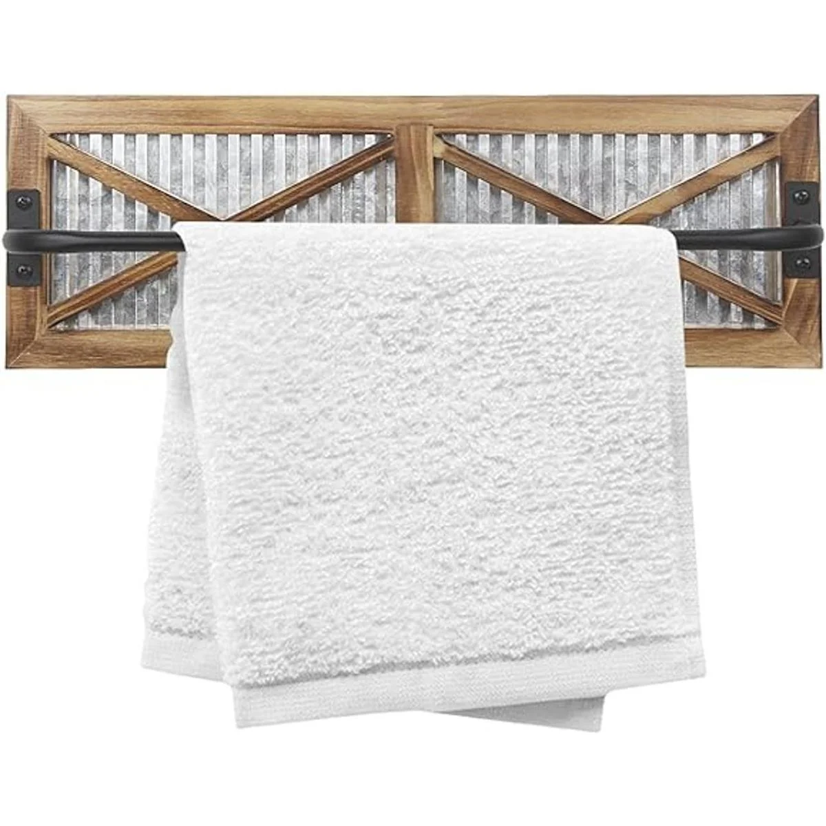 Butizone Toallero de baño rústico, soporte de toalla montado en la pared con madera desgastada y metal galvanizado corrugado, estante de granja para colgar toallas las toallas no están incluidas