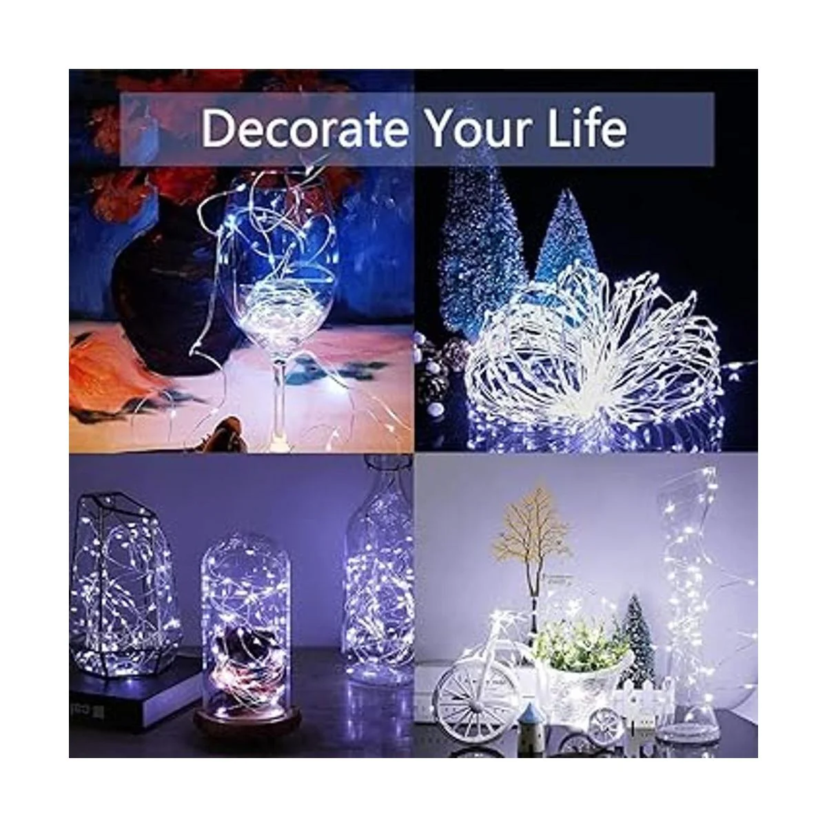 Amplia variedad de usos: esta cadena de luces de alambre plateado se puede doblar y dar forma fácilmente a tu uso; con una longitud de 16.4 pies y 50 micro LED brillantes, se puede utilizar para crear un ambiente alegre y festivo para deleitar tu Navidad, vacaciones, cumpleaños y bodas. La luz parpadeante es resistente al agua, perfecta para decoración interior y exterior.