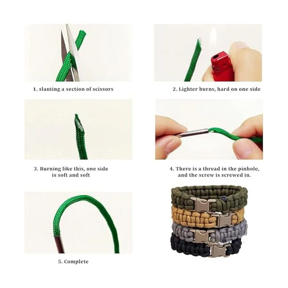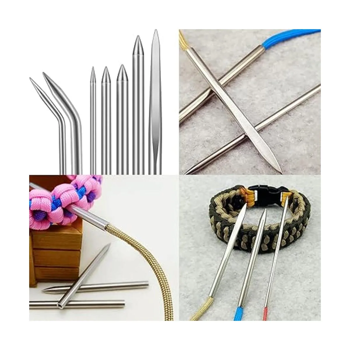 Amplias aplicaciones: herramientas y accesorios de paracaídas adecuados para agujas de diferentes tamaños, longitudes y formas, se pueden adaptar a la mayoría de tus cordones, cuerdas u otros materiales y requisitos, se pueden utilizar para pulseras de cuerda de paraguas, tejido de cuero y otras manualidades y accesorios de bricolaje.