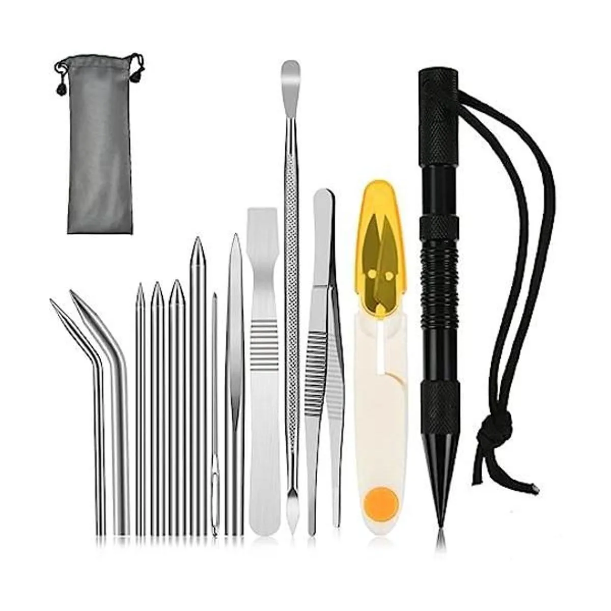 El paquete incluye: recibirás 14 piezas de juego de cuerda de paracaídas, incluyendo 1 pieza de marlinspike, 5 piezas de paracaídas de diferentes diámetros, 2 piezas de aguja curvada, 1 pieza de aguja roma de ojo grande, 1 pieza de pinzas, 2 piezas de herramientas de alisado de cuerda de paracaídas, 1 pieza de tijeras de costura en forma de U, 1 bolsa de tela impermeable, suficiente para satisfacer tus necesidades diarias