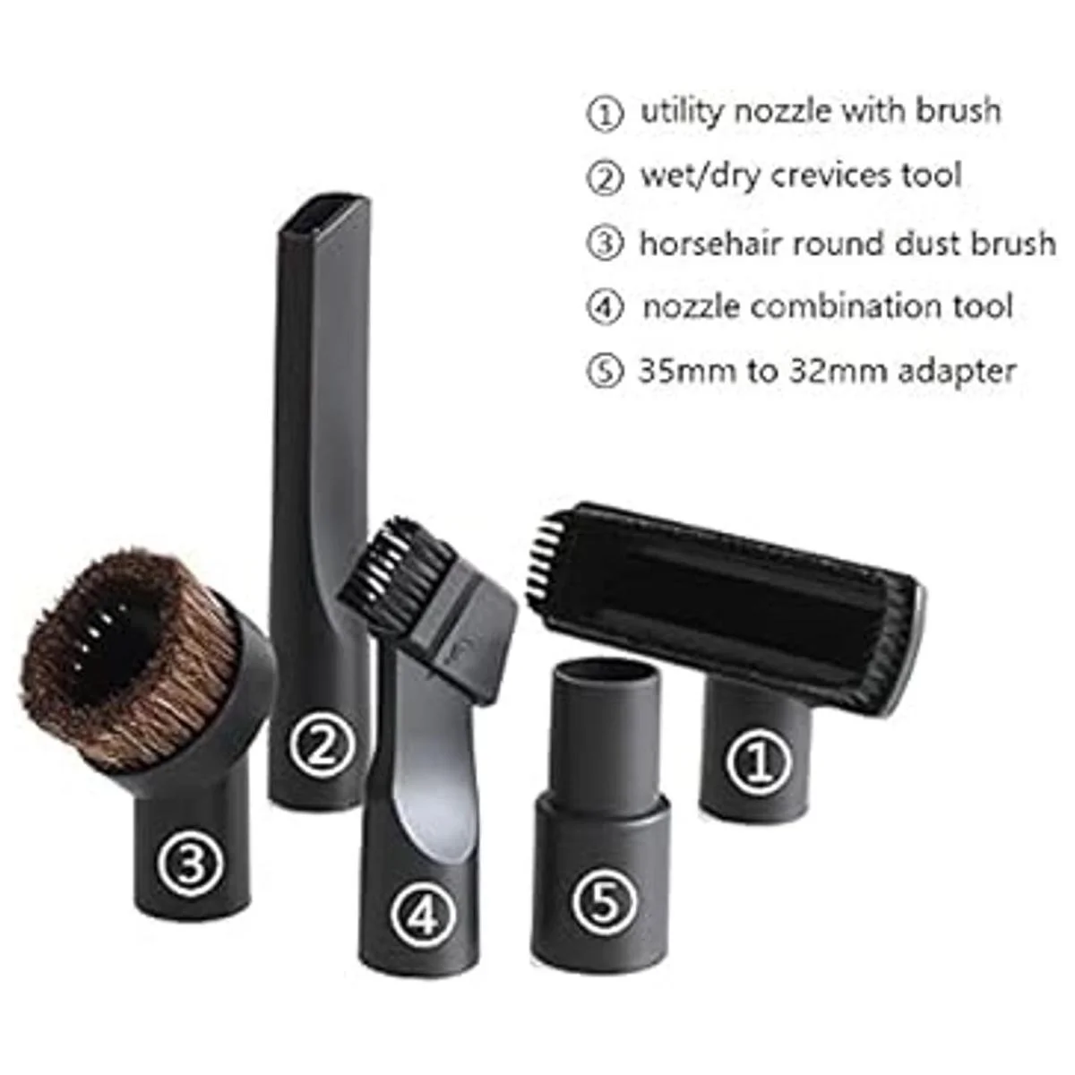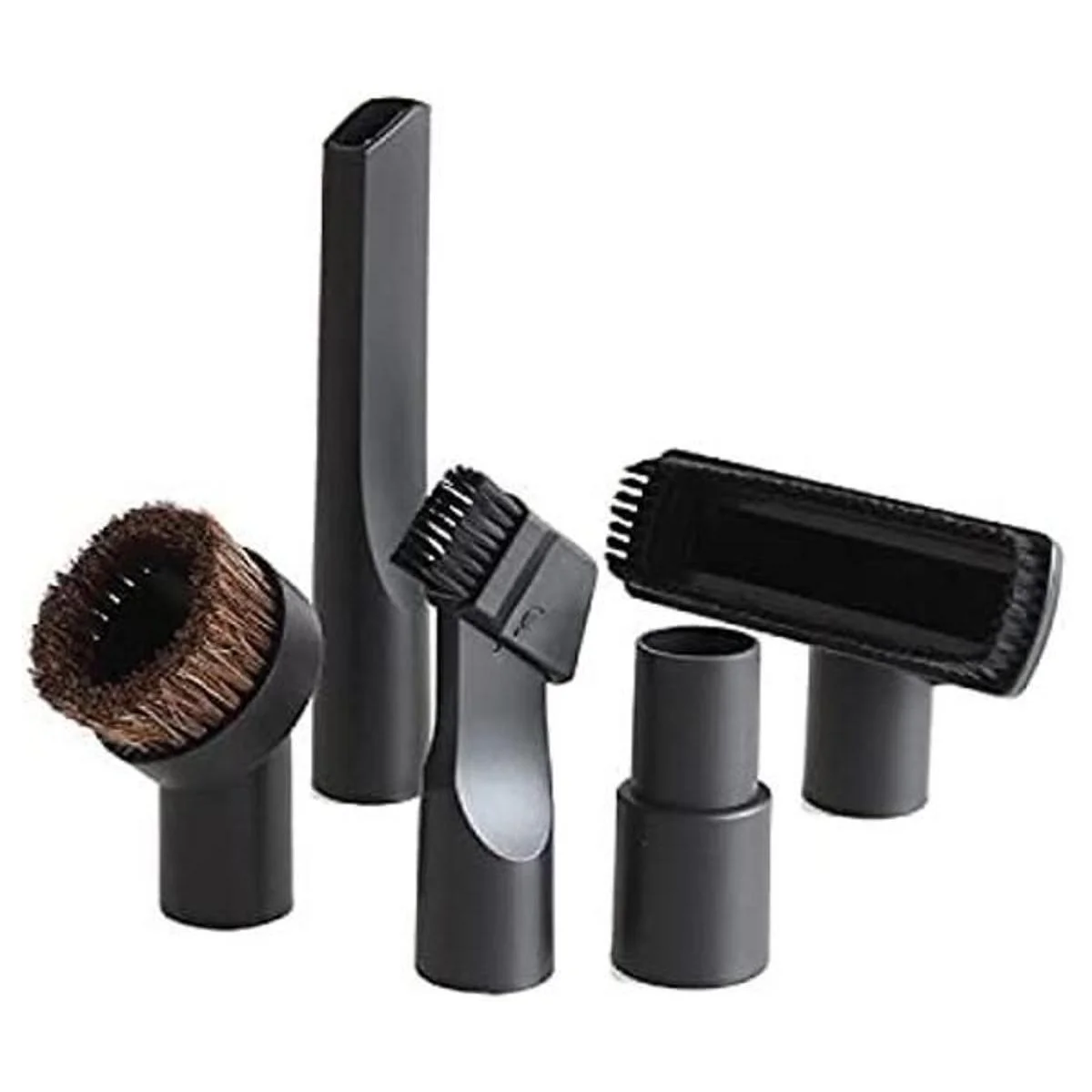 El juego incluye: boquilla de utilidad de 1.260 in con cepillo/herramienta de vacío en seco o mojado/cepillo de polvo redondo de crin / herramienta de combinación de boquilla de 1.378 in a 1.260 in adaptador de manguera