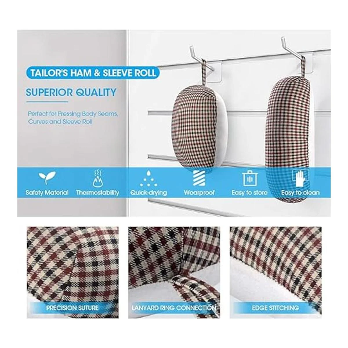 Planchado fácil: disfruta de una ropa impecable con nuestro juego de jamón de sastre y rollo de costura Fácil de usar y práctico, estas herramientas de prensado son imprescindibles en tu kit, lo que te permite presionar costuras curvas más pequeñas con facilidad.