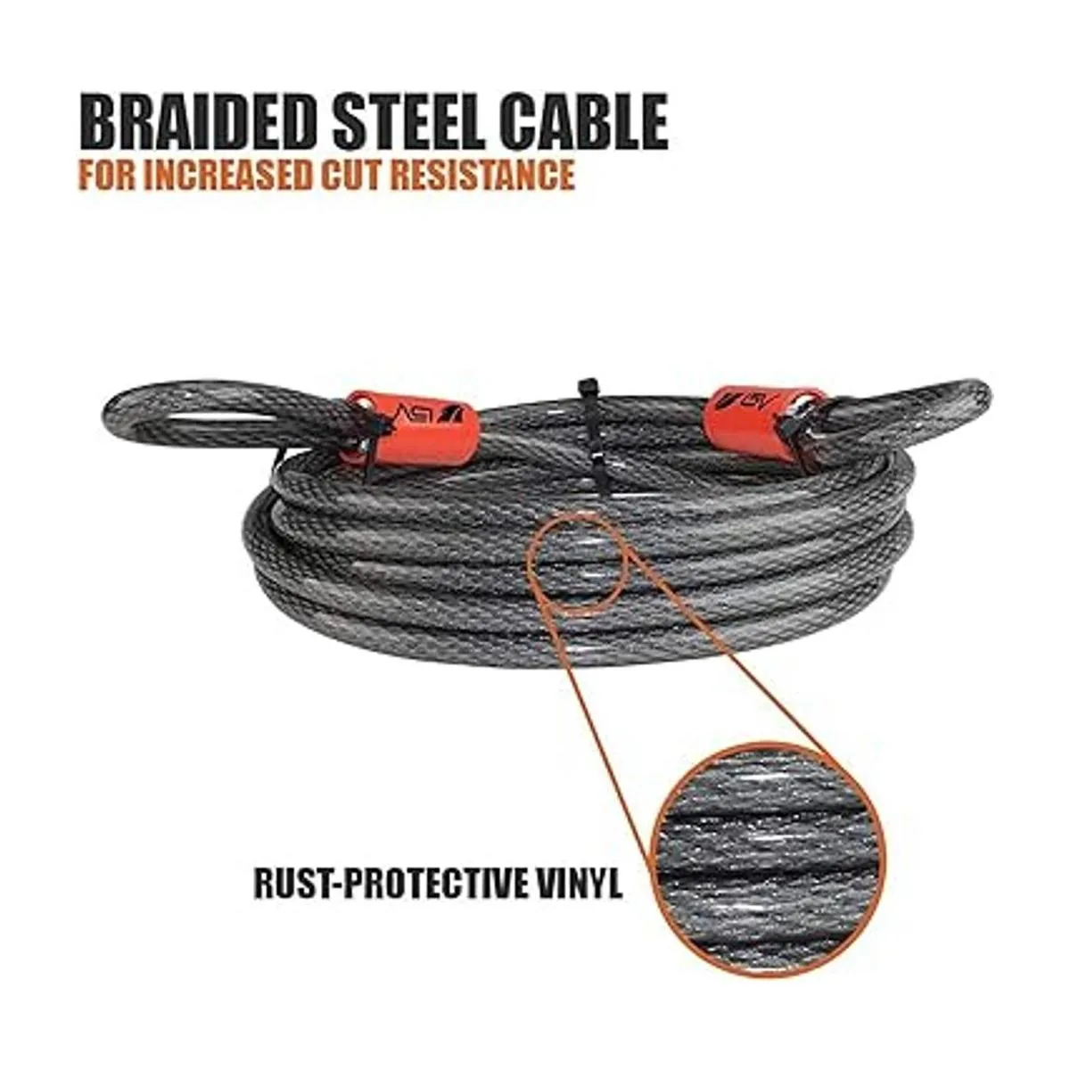 BV Cable de acero de seguridad de 15 pies con bucles, cable flexible de acero trenzado, cable de bloqueo de 38 pulgadas, para bloqueo en U y candado