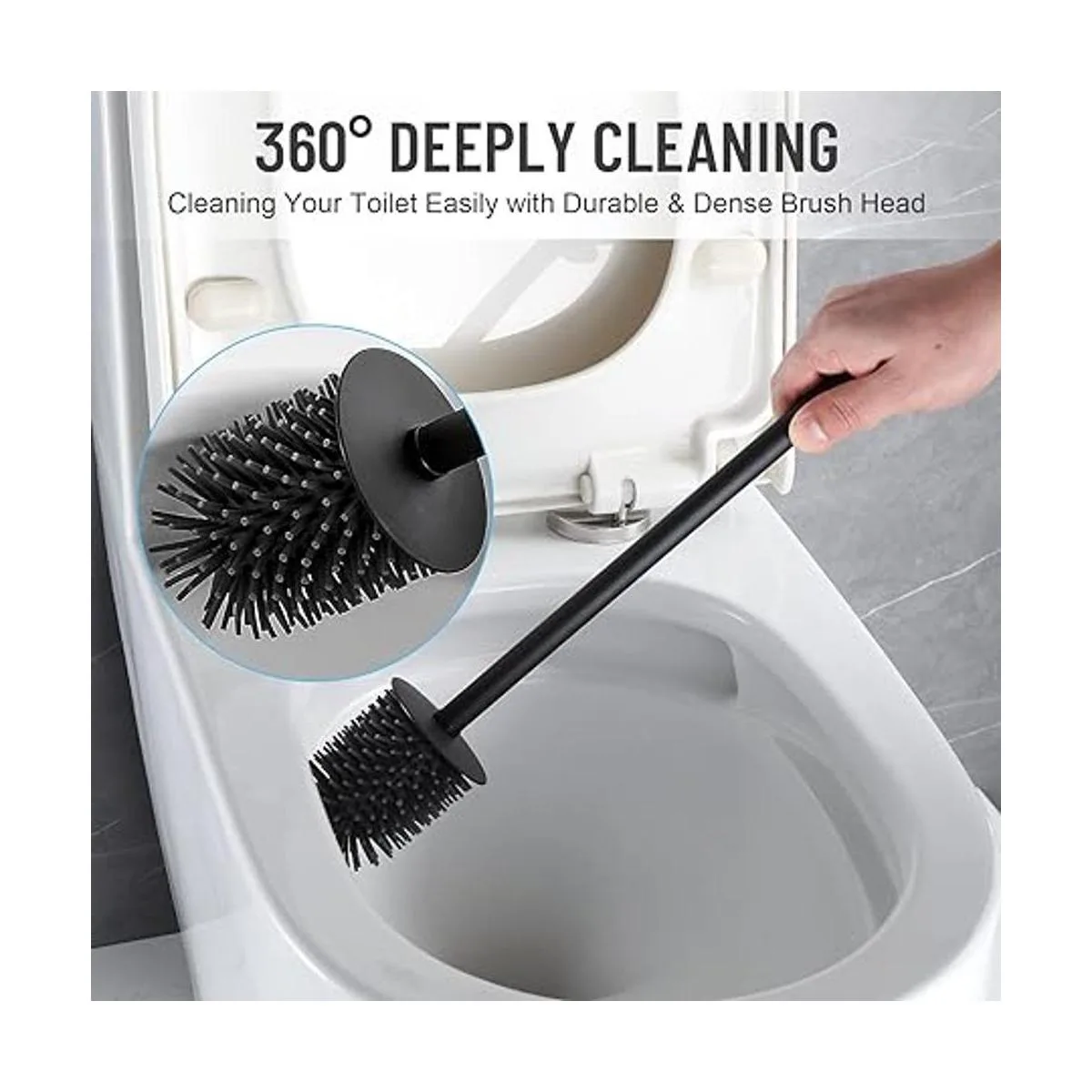 Diseño fácil de usar: hay una cubierta impermeable en la parte superior del cabezal del cepillo para evitar que el agua sucia salpique en tus manos al cepillar el inodoro.