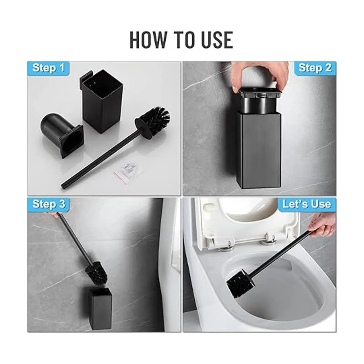 Diseño de montaje en pared: ideal para baño de espacios pequeños, accesorios para instalación están incluidos con el paquete. El cepillo de inodoro nunca se caerá después de la instalación.