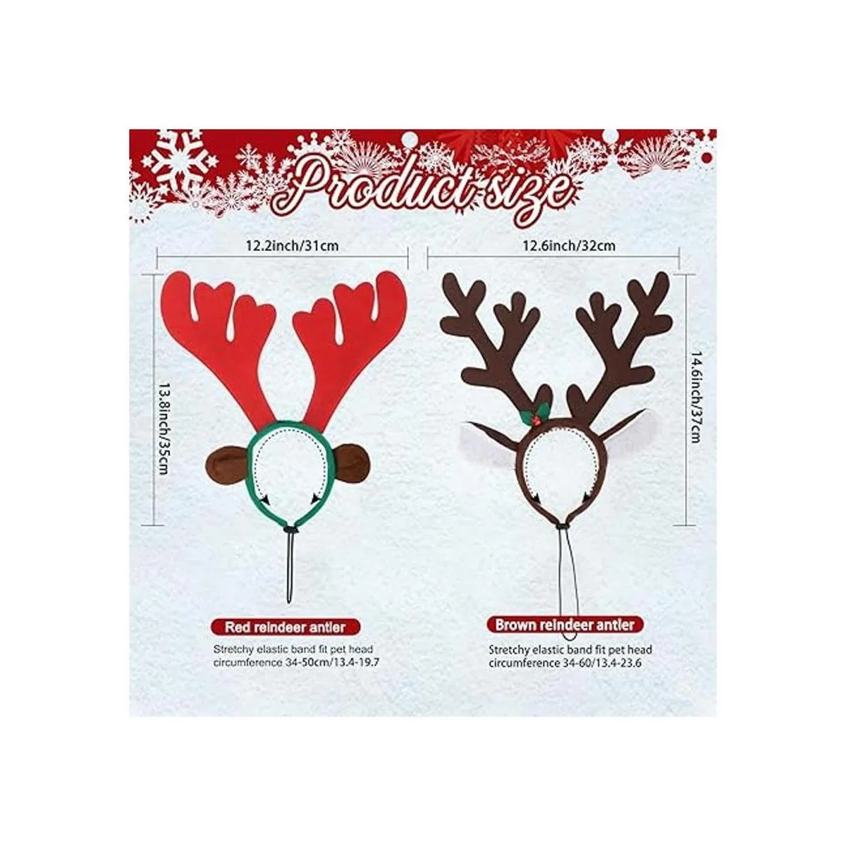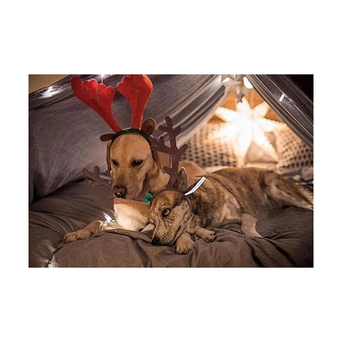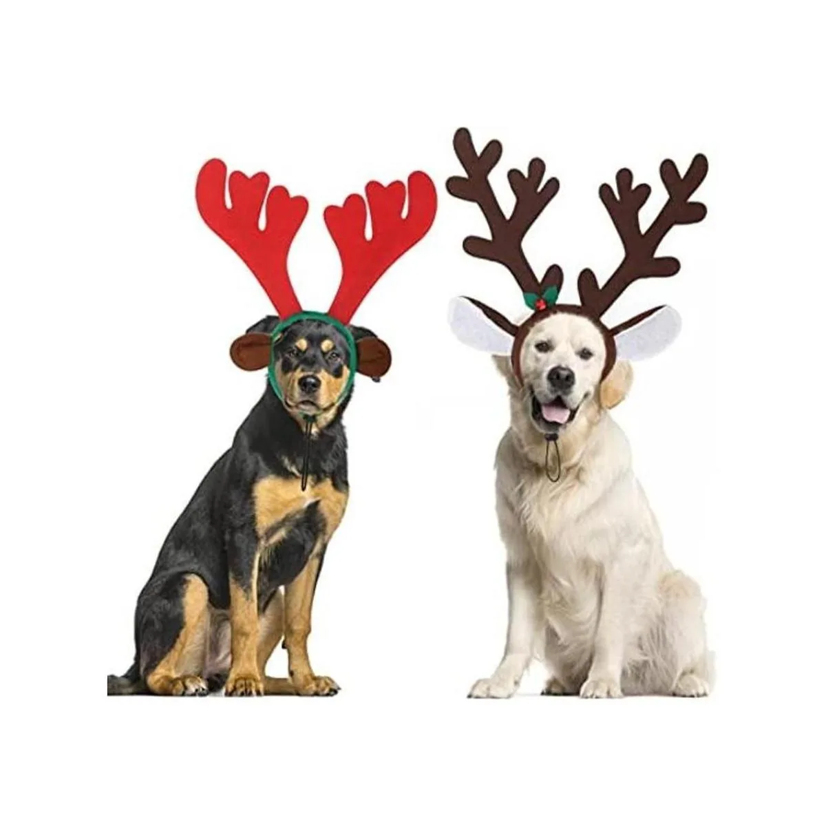 BWOGUE Juego de diademas de cuernos de reno de alce de Navidad para perros medianos y grandes