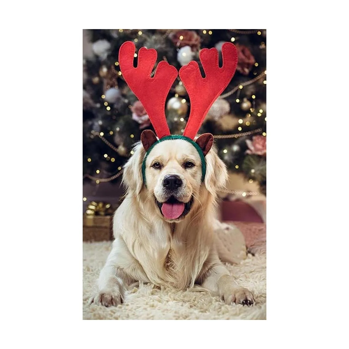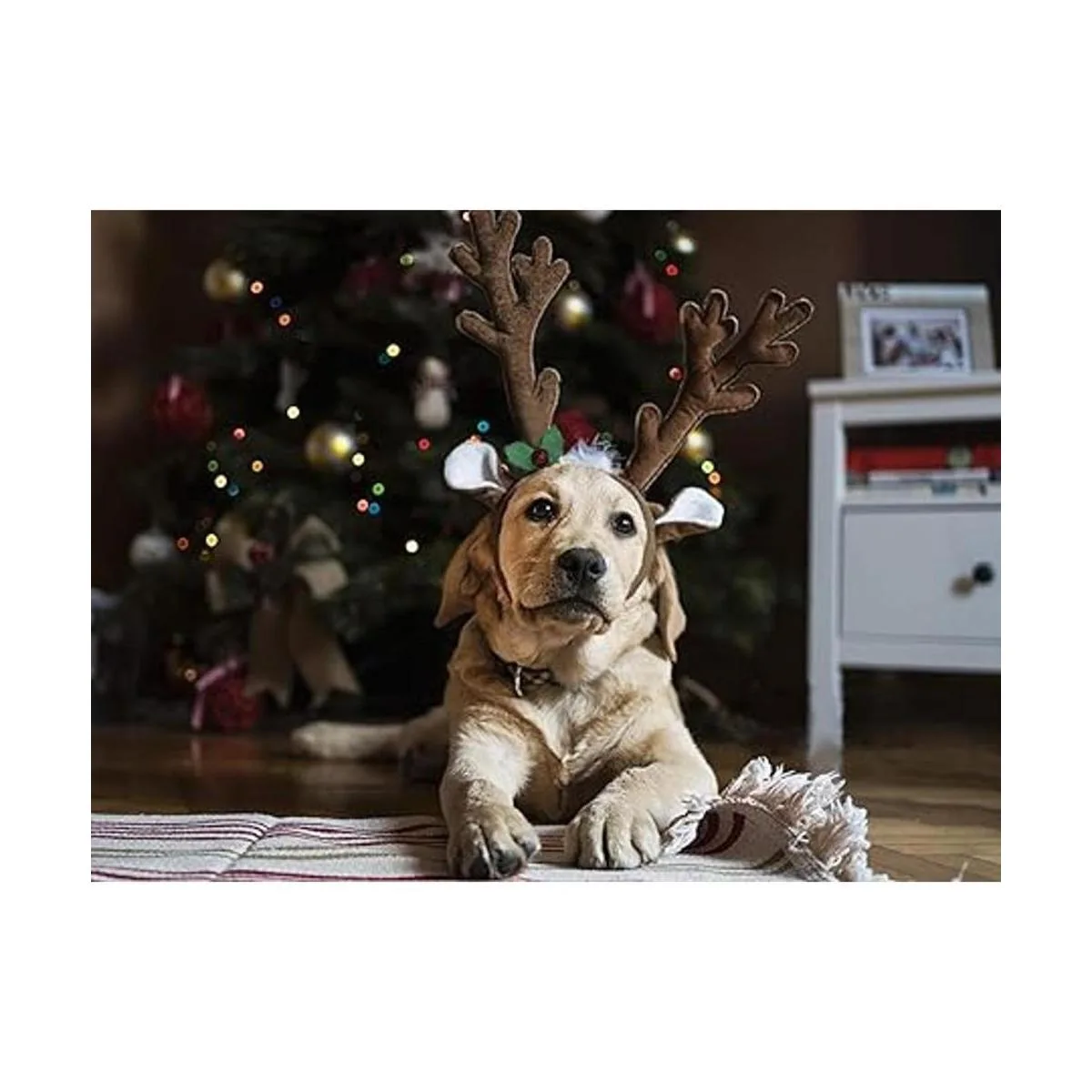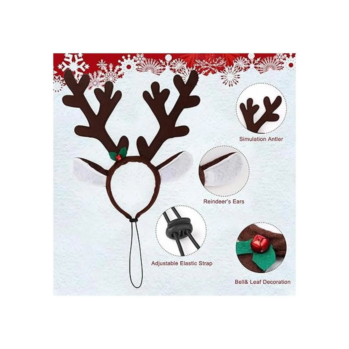 BWOGUE Juego de diademas de cuernos de reno de alce de Navidad para perros medianos y grandes