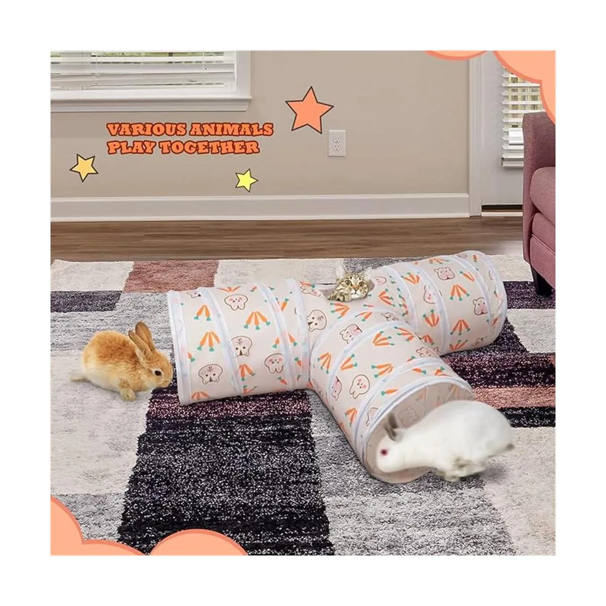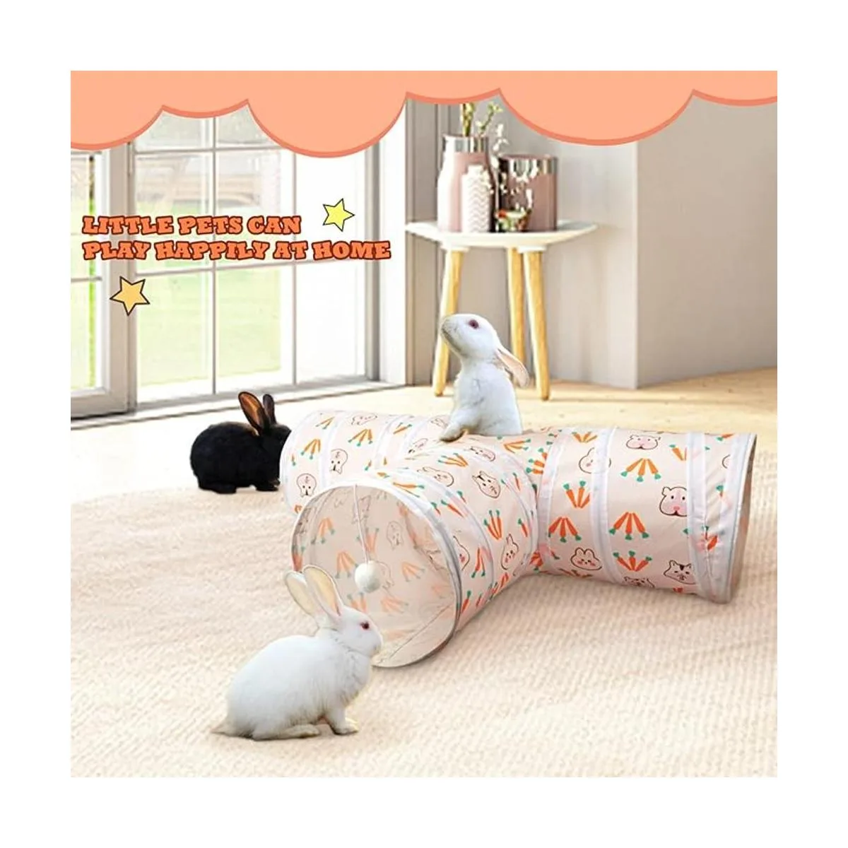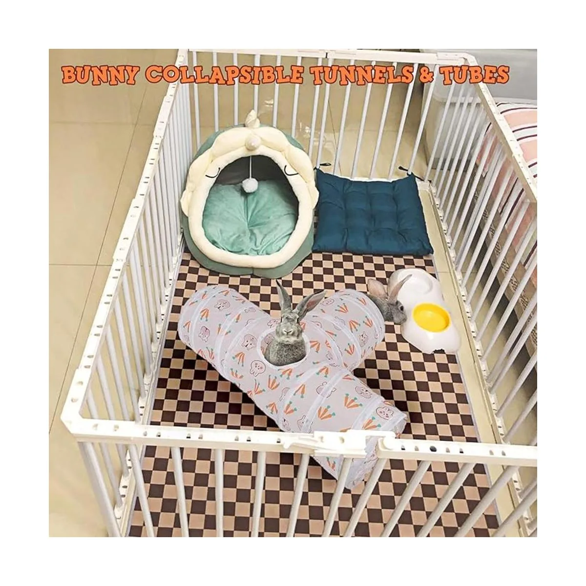 Diseño especial: nuestro túnel de conejo con 3 amplios túneles, mirilla y juguete de bola móvil, este juguete de conejo le da a tu conejo más formas de divertirse, el patrón de zanahoria atraerá a tu pequeña mascota a jugar, manteniendo a tu conejo entretenido durante largas horas.